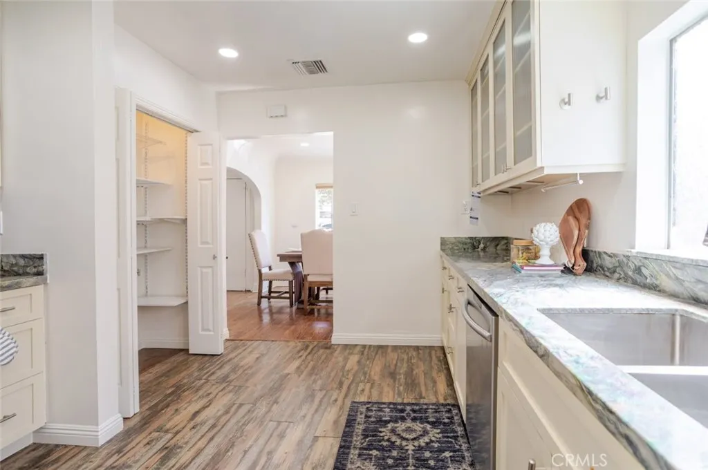 Welcome to this beautifully updated Spanish-style single-family home, offering 3 bedrooms and 2.5 bathrooms across approximately 1,150 square feet of thoughtfully designed living space. Blending timeless character with modern upgrades, this home is filled with natural light, warm finishes, and inviting details throughout. The interior showcases rich wood flooring, recessed lighting, and an open, airy layout that flows seamlessly from the living and dining areas. The upgraded kitchen features stainless steel appliances, sleek cabinetry, and stylish countertops, creating a functional and elegant space perfect for everyday living and entertaining. Spacious bedrooms provide comfort and flexibility, while the bathrooms are tastefully updated to complement the home's classic charm. Large windows and French doors enhance the indoor-outdoor connection, bringing in abundant natural light and offering direct access to the backyard. The outdoor space offers a private retreat complete with a patio area, grassy yard, and mature landscaping, ideal for relaxing, dining, or hosting gatherings. The property also includes a detached 2-car garage, providing ample parking and additional storage.