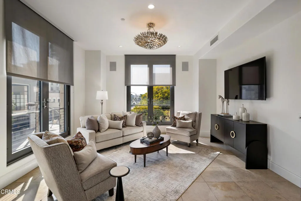 Welcome to The Montana, one of Pasadena's most prestigious full-service luxury residences, ideally positioned along iconic Colorado Boulevard. This exceptional 3rd-floor corner condo offers refined living, sweeping views over Paseo Colorado & the vibrant cityscape beyond. A grand entry with tray ceilings & refined detailing sets the tone for this expansive open-concept living space. Hardwood floors, recessed lighting & an oversized gas fireplace with a raised stone hearth create a warm, sophisticated setting. A wall of windows fills the room with natural light, framing dynamic city views. A flexible secondary living space with sliding solid wood doors offers the perfect setting for relaxing, a large home office, or an additional dining area. The chef's kitchen is beautifully appointed, featuring stone countertops, a center island & a suite of high-end appliances, including a Sub-Zero refrigerator, Wolf double ovens, a warming drawer, a microwave & a 6-burner cooktop. Custom cabinetry with soft-close features, built-ins & pantry storage completes the space. The west wing hosts 2 generously sized bedrooms. One offers an ensuite bath with a walk-in shower & custom tilework, while the 2nd enjoys access to a spacious hallway bath & a dedicated laundry area featuring a side-by-side washer & dryer, countertop workspace & cabinetry. Privately situated on the east wing, the primary suite is a true retreat. This expansive sanctuary features high ceilings, recessed lighting & French doors overlooking the Paseo. A remarkable amount of closet space includes cedar-lined wardrobes & a lar