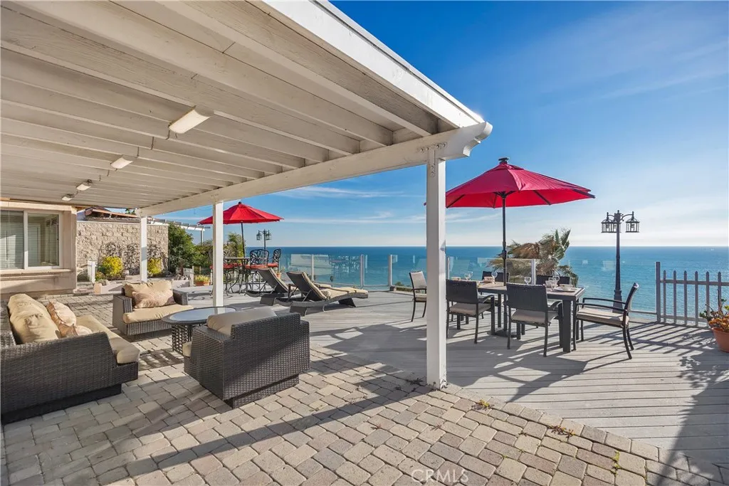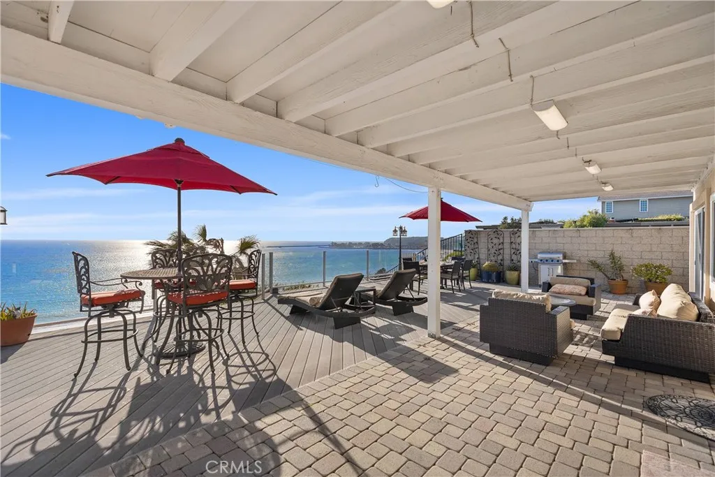 **Property is currently rented; available starting April 15, 2026**. Available for monthly or annual lease, this furnished 4-bedroom, 4.5-bathroom oceanfront residence in Dana Point offers a unique opportunity for luxury living. Situated on the bluff with unobstructed panoramic ocean views, the home combines elegant design with comfort, creating a serene coastal retreat. The main level features a well-appointed gourmet kitchen, seamlessly connecting to the dining and living areas, providing an inviting space for both relaxation and entertainment. A private guest bedroom with an ensuite bathroom and a powder room complete the main floor. Upstairs, three spacious bedrooms offer mesmerizing ocean views, with the primary suite serving as a tranquil haven, featuring a king-size bed, lavish ensuite bathroom, and a private balcony overlooking the Pacific. Additional bedrooms include a queen bed in the second guest room and a queen bed paired with a twin bed in the third bedroom with a private ensuite. A secondary hallway bathroom is also available upstairs. Practical amenities such as a washer and dryer add convenience, while central air conditioning ensures comfort year-round. The ground-level patio offers a perfect setting for alfresco dining or unwinding against the backdrop of the ocean. With ample parking in the expansive driveway and a prime location minutes away from major grocery stores, restaurants, Dana Point harbor, and Southern California's finest beaches, this ocean bluff home combines convenience with coastal living. Embrace the opportunity to lease this stunning oce