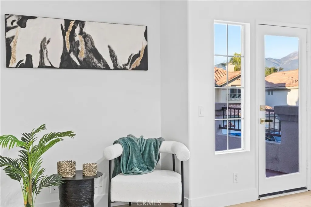 An exquisite residence, meticulously remodeled to offer an entirely turn-key living experience, is situated in the tranquil, highly sought after enclave of Villavante. This magnificent, detached single-family home is gracefully nestled just moments from the spectacular Tijeras Creek Golf Course, offering a lifestyle of serenity and sophistication. The expansive, open floor plan spans 1,712 square feet of thoughtfully designed living space, promising both comfort and elegance. Step inside to discover immaculate hardwood flooring that flows seamlessly throughout the entry, formal living room, and sophisticated dining area. The main level features a versatile room, currently configured as a refined office or den, complete with a discreet, built-in Murphy bedan ideal accommodation for esteemed guests. A convenient main-floor bathroom and shower enhance the homes functional elegance. The culinary heart of the home, the extra-large kitchen, is a chef's delight, boasting rich wood cabinetry, lustrous quartz countertops, and top-tier stainless-steel appliances. A bright breakfast nook provides a welcoming space for casual dining. Ascend to the upper level to find the indulgent, oversized master suite, which features a private walk-out patio deck, a luxurious bathroom suite with a Roman tub and separate shower, and an extensive walk-in closet. The generous third bedroom upstairs offers privacy and comfort with its own dedicated full bathroom. This home is bathed in natural light, enhanced by abundant windows and a fresh, bright new designer interior paint. The serene outdoor living