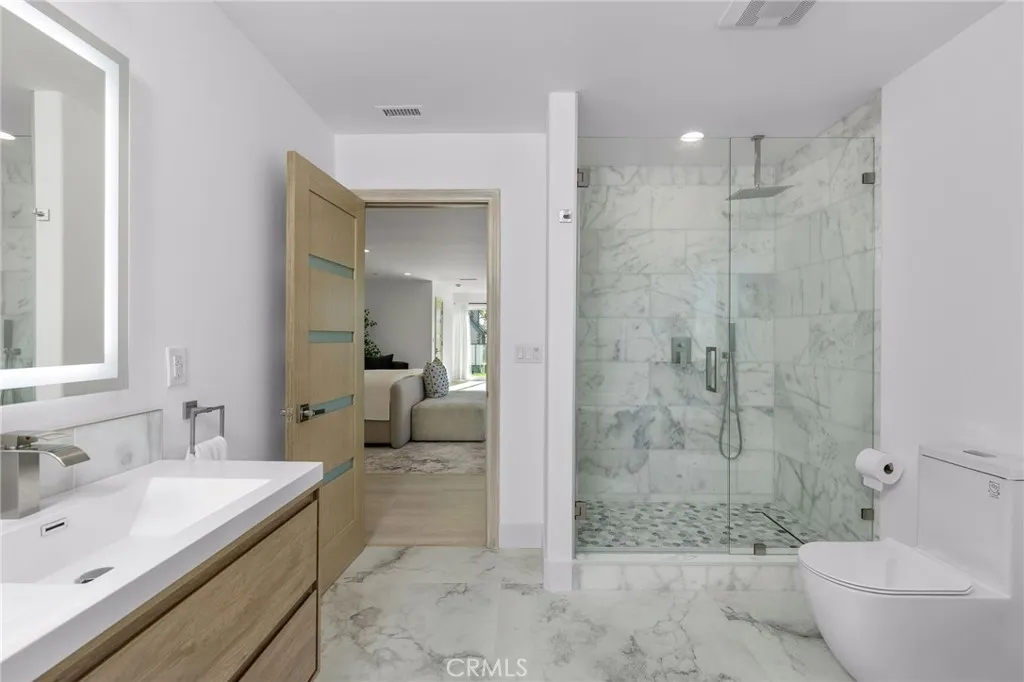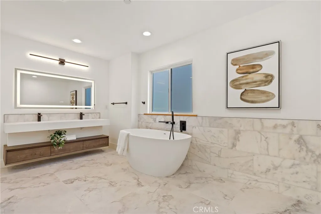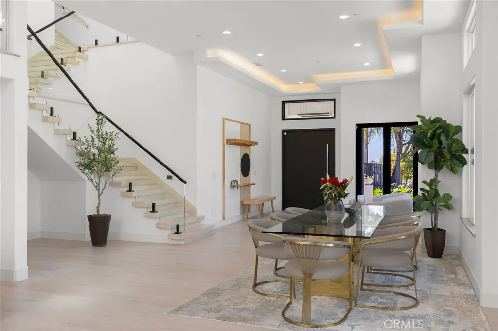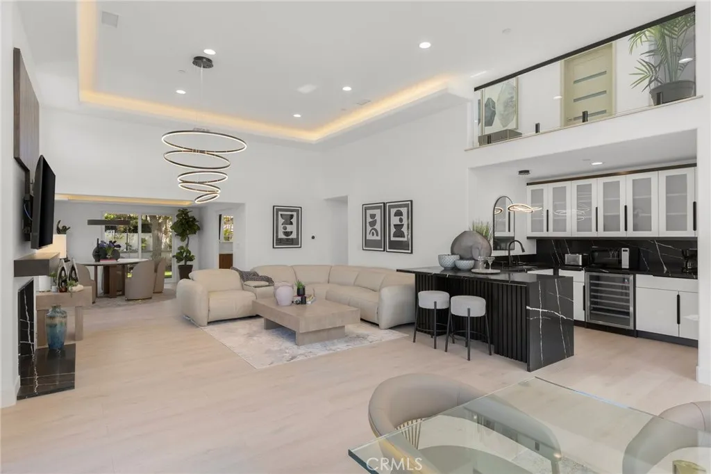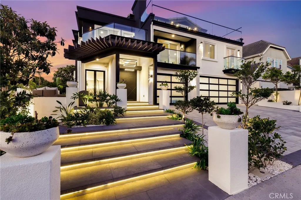 Experience Contemporary Coastal Luxury at its finest at 35242 Vista De Todo, an extraordinary modern estate masterfully rebuilt with uncompromising attention to detail and craftsmanship. Tucked at the end of a quiet cul-de-sac in Capistrano Beach, this residence commands exceptional curb appeal, sweeping ocean vistas, and vibrant sunset skies that frame the home in year-round beauty. A striking 5 x 8 metal pivot door sets the tone as you step into a dramatic living area with soaring 12 ceilings, designer lighting, and an architectural glass staircase with sleek black steel handrail. The open-concept great room is anchored by an artistic modern fireplace and a stunning marble wet bar with glass front cabinetry and a built-in wine refrigeratoran entertainers dream. With 6 expansive ensuite bedrooms, each offering walk-in closets, plus two additional half baths, this 6,409 sq ft estate blends sophistication with effortless comfort. The main level includes two luxurious bedroom suites, while the upper level showcases a spectacular primary retreat with a private ocean-view terrace. Multiple balconies throughout the home capture panoramic coastal views and unforgettable sunsets. The gourmet kitchen features stone countertops, Thermador stainless appliances, a full-size wine refrigerator, breakfast bar, and casual dining area. Picture windows and sliding doors gain access and frame the beautifully designed backyard, complete with a putting green, BBQ, Italian pizza oven, outdoor wine cooler, fruit trees, and manicured wraparound grounds. The second floor also offers a private offi