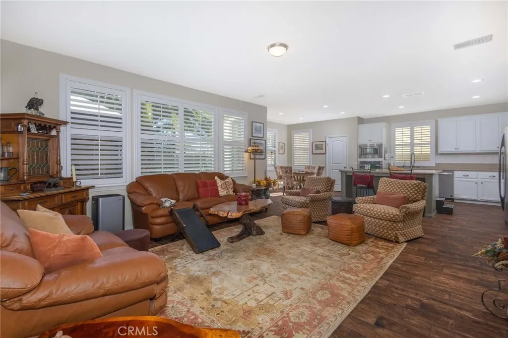 Immaculate, move-in ready home with exceptional upgrades and curb appeal! The freshly painted exterior, well-manicured landscaping, and private backyard with patio and included gazebo create the perfect outdoor retreat. Inside, enjoy plantation shutters throughout and durable, no-maintenance tile flooring. The flexible floor plan features an office and formal dining area at entry, with a wood-finished barn door that allows the front space to be closed off for added privacy. The open-concept great room seamlessly connects the fully equipped kitchen, dining area and living room with a cozy fireplace. A main-level, multi-generational suite includes a studio bedroom, compact kitchen, and full bath-ideal for guests or extended family. The two car garage is equipped with an electric vehicle charging station. Upstairs offers a spacious family/media room, large laundry room, a beautiful primary suite, three additional bedrooms (one with a private full bath) and a full double sink hall bathroom to accommodate the two additional bedrooms. Located in the desirable Spencer Crossing community with resort-style amenities, including a sports park, junior Olympic pool, spa, and clubhouse.
