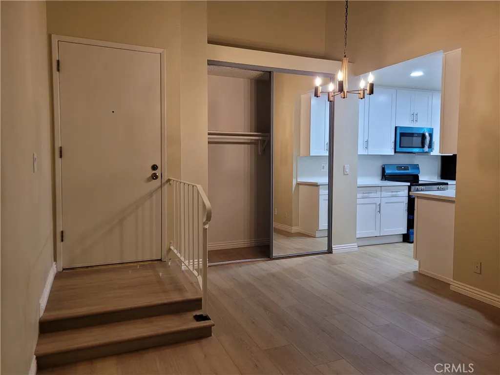 Top-floor (Unit 306) 1-bedroom Lindenwood condominium located in the highly desirable Bixby Knolls neighborhood. This light-filled home features soaring ceilings in both the living room and bedroom, creating an open and airy atmosphere. The updated kitchen is beautifully appointed with recessed lighting, quartz countertops and backsplash, stainless steel appliances, and crisp white shaker cabinetry. New vinyl flooring runs throughout the unit, adding a modern and cohesive touch. Two spacious closets provide generous storage. Enjoy your private balcony overlooking the serene, landscaped interior courtyard a perfect setting for morning coffee or evening relaxation. Conveniently situated just steps from the elevator, trash chute, and community laundry room. The unit includes one secured ground-level parking space. Lindenwood residents enjoy a variety of well maintained amenities including two elevators, a recreation room, sparkling pool and spa, BBQ area, and lushly landscaped courtyard.