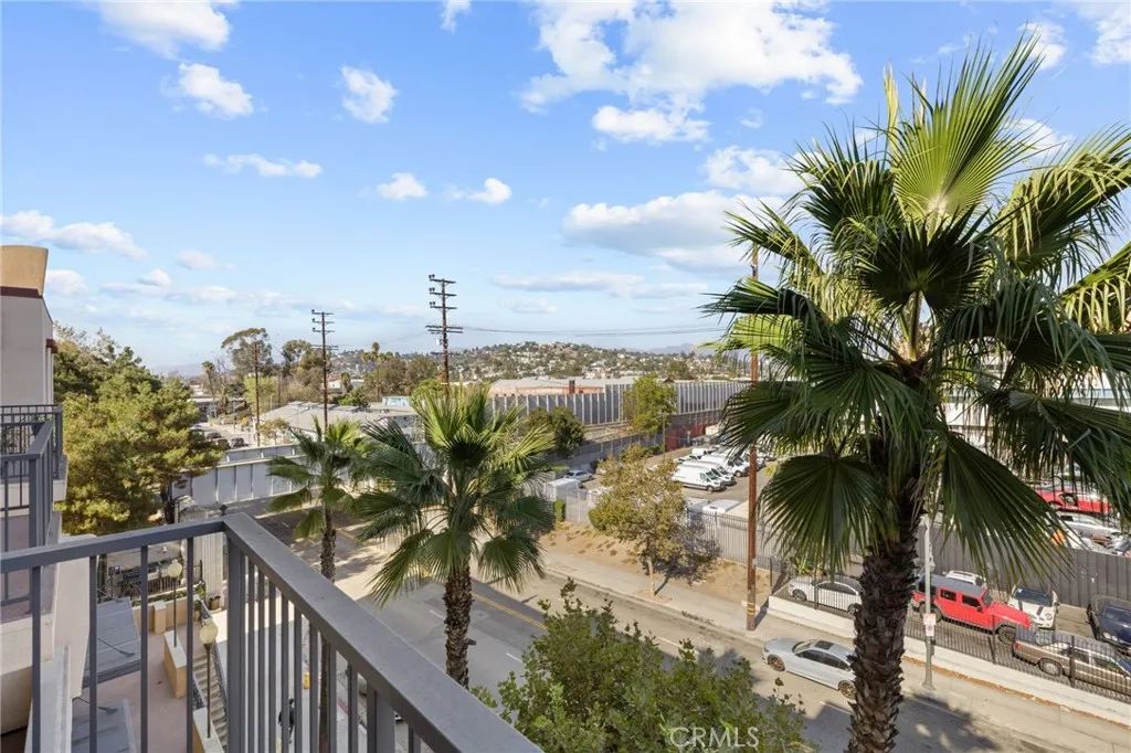 Top-floor loft residence at Puerta Del Sol, a gated community in Lincoln Heights. This light-filled home features soaring approximately 17-foot ceilings, an open-concept layout, and expansive windows providing abundant natural light. The kitchen and bathroom include granite countertops and upgraded appliances. A private balcony offers city and mountain views. A renovated bonus room provides flexible use as a small bedroom, home office, or additional storage, adding functional space beyond the main living area. In-unit laundry included. Community amenities include a landscaped courtyard with fountain, fitness center, clubhouse and resident lounge with billiards, BBQ area, EV charging stations, pet relief area, bike racks, elevator access, secured guest parking, and underground gated garage parking. Convenient access to the Lincoln/Cypress Metro Station (Metro A Line) and the 5, 110, and 2 freeways. Approximately 1.5 miles and 5 minutes from Dodger Stadium and centrally located near Highland Park, Chinatown, Downtown Los Angeles, the Arts District, Silver Lake, and Pasadena. HOA includes water, trash, sewer, security, and common area maintenance. Ideal for first-time homebuyers, investors, or those seeking low-maintenance urban living.