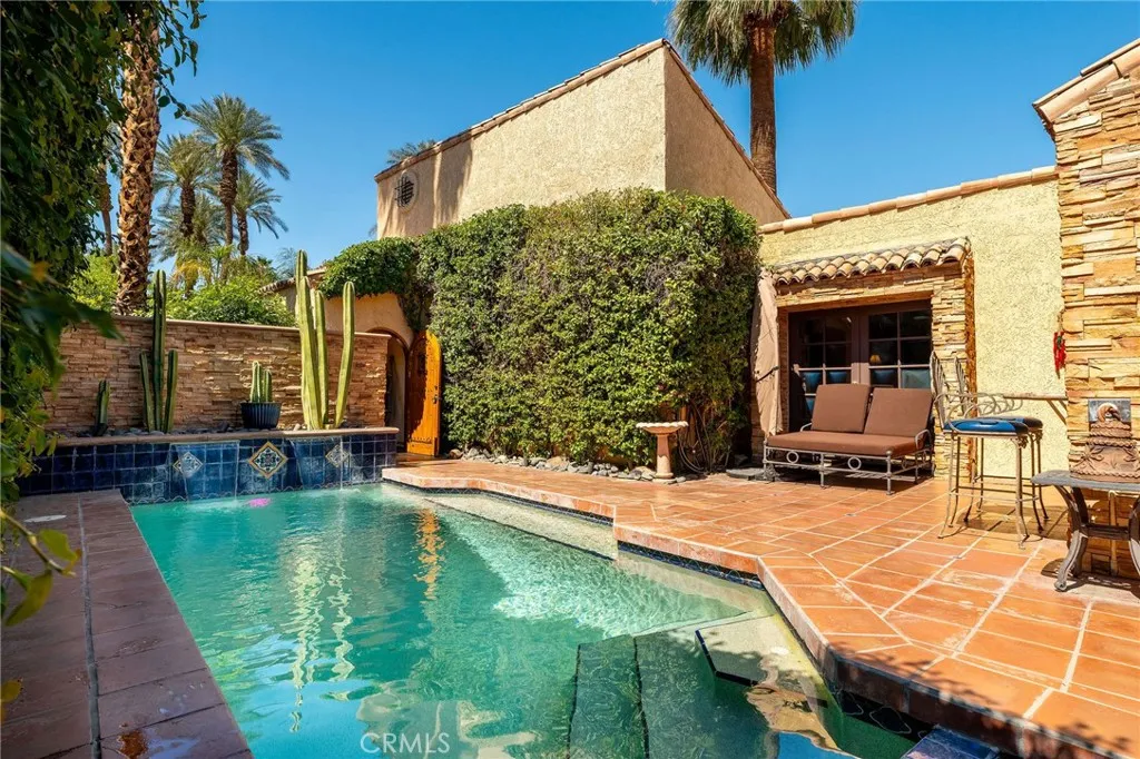 Welcome to a place where comfort and calm come naturally, nestled within the gates of the desirable Rio Del Sol community. This thoughtfully maintained single-story home offers a sense of ease from the moment you arrive, with soft natural light, open spaces, and a quiet connection to the outdoors. Inside, vaulted ceilings and a flowing layout create an inviting atmosphere. The living areaanchored by a warm fireplaceoffers a cozy setting for both everyday living and relaxed gatherings. Large sliding doors gently extend the space outward, blurring the line between indoors and out. At the heart of the home is a private courtyard, where a pool and spa rest peacefully under open skies. Its a space designed for unhurried mornings, quiet afternoons, and evenings spent enjoying the stillness of the desert air. The kitchen is both practical and welcoming, featuring granite countertops and ample storage, with a layout that supports easy, comfortable living. The primary suite provides a restful retreat with direct access to the pool and spa, creating a seamless indoor-outdoor experience. The second bedroom offers flexibility for guests, work, or personal pursuits. With no shared walls and the simplicity of single-level living, the home offers a sense of privacy and quiet that is increasingly rare. Beyond the home, Rio Del Sol provides a beautifully maintained setting with walking paths, community pools, tennis and pickleball courts, and a scenic lakeall contributing to a lifestyle that feels both active and peaceful. This is a home that invites you to settle in, slow down, and enjoy t