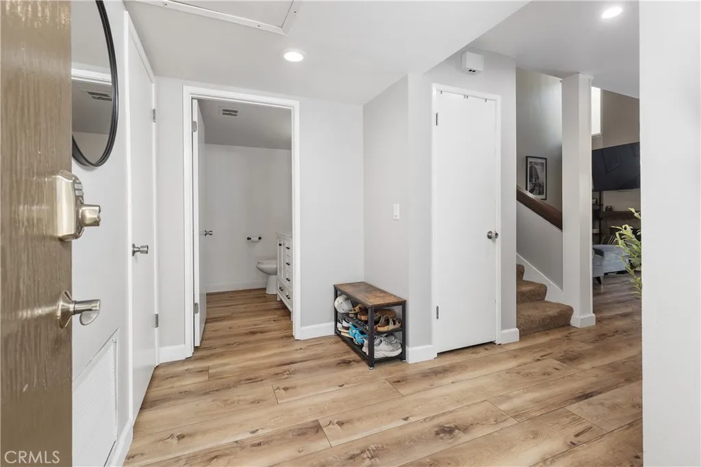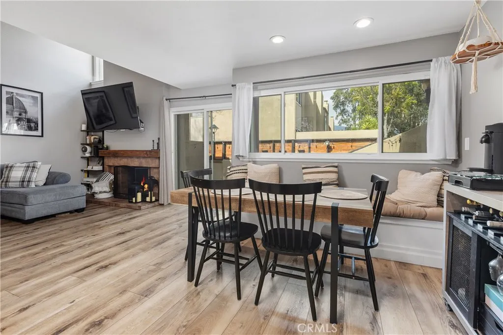 Welcome to this beautifully updated residence in the highly sought-after North Towne Park community, where modern design and everyday comfort come together in one inviting space. This 2-bedroom, 1.5-bath condo offers 1,146 square feet of thoughtfully curated living with stylish finishes and a light, airy ambiance throughout. Step inside to a bright and inviting living room featuring soaring vaulted ceilings, a cozy fireplace, and updated vinyl flooring that flows seamlessly through the main living areas. Sliding glass doors from the living room lead to a private patio accented with string lights, creating an inviting outdoor space perfect for relaxing or entertaining. At the heart of the home, the upgraded kitchen showcases quartz countertops, stainless steel appliances, white shaker cabinetry, and a striking white and black herringbone backsplash that adds the perfect designer touch. Upstairs, both bedrooms are generously sized and filled with natural light, each featuring vaulted ceilings that enhance the homes open feel. The primary bedroom offers a comfortable retreat, complete with an ensuite bathroom, a spacious closet with built-in organizers, and a private balconyperfect for enjoying morning coffee or unwinding in the evening. Downstairs, a convenient powder room includes an updated vanity along with an in-unit washer and dryer. Additional highlights include a one-car attached garage plus an additional covered carport space for added convenience. Residents of North Towne Park enjoy access to community amenities including a pool, spa, clubhouse, and lush greenbelts.
