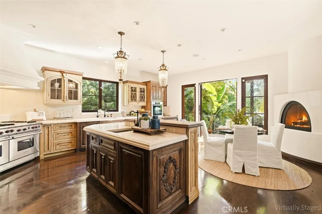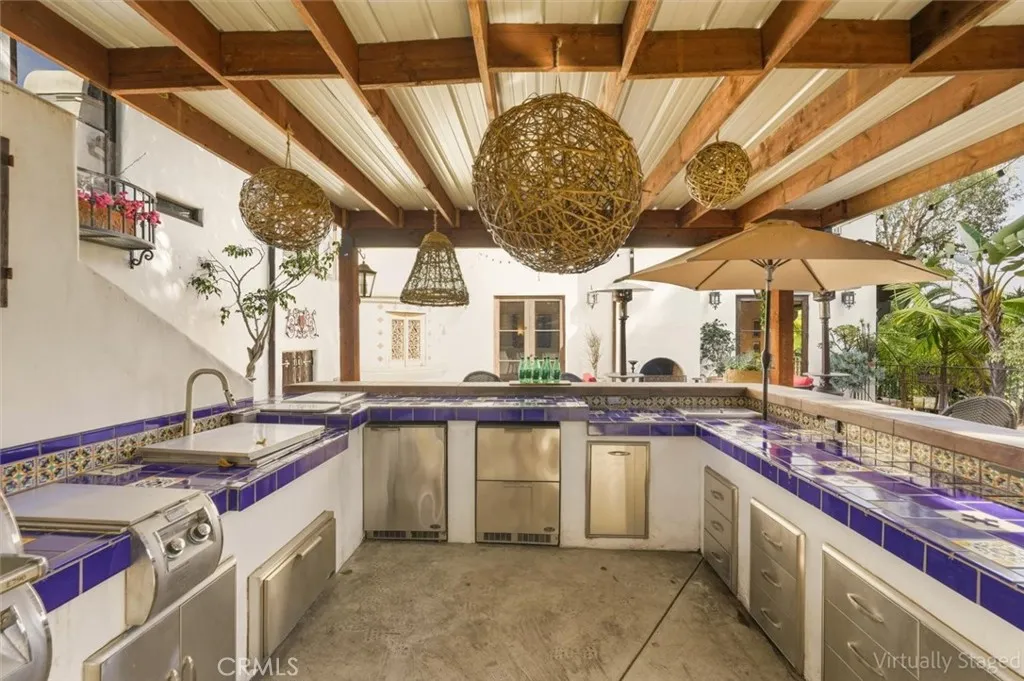 Gorgeous custom 1920s Spanish Hacienda located in the highly desirable Valmonte section of Palos Verdes Estates, designed by world-renowned architect Miles Pritzkat. This exceptional residence offers 4 bedrooms, 4 bathrooms, and just under 4,000 square feet of living space on an expansive 13,384-square-foot lot. Enter through an antique Egyptian door into a private courtyard and a home rich with character and timeless elegance. The gourmet chef kitchen features Sub-Zero, Miele, and Wolf appliances, custom cabinetry, and striking antique chandeliers. A formal dining room opens to a stunning patio overlooking resort-like grounds, which are visible from almost every room in the home and enhanced by multiple outdoor fireplaces. Designed for true indoor-outdoor living, the property showcases lush landscaping, an outdoor kitchen, multiple lounging and entertaining areas, out door fireplace and exquisite vintage tile work throughout. The sparkling pool and spa preserve the original 1920s Spanish charm, creating a private oasis. The primary en-suite retreat features a beautiful Spanish-style fireplace, an expansive private patio, and a private balcony overlooking the backyard and poolnothing short of magnificent. A second kitchen and additional washer and dryer offer excellent flexibility and can easily be configured as in-law quarters or a junior ADU. A rare opportunity to own a piece of Palos Verdes architectural history. Modern Life meets Spanish charm!