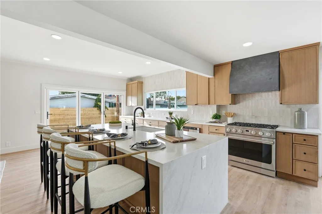3675 Palo Verde is a gorgeous, open-concept, remodeled five-bedroom, three-bathroom home in a great area of Long Beach. It has a beautiful entryway that includes a new front door, luxurious tile, and custom cabinetry. The living room features a remodeled fireplace, opens to the kitchen, and offers a view of the glass staircase leading to the primary retreat. The kitchen has a waterfall island, soft-closing drawers & cabinets, new appliances, and folding doors that create indoor-outdoor living for the perfect entertainer's dream. Off the kitchen, you will find a dedicated laundry room with custom cabinets. There is dining room space inside the home and in the backyard for those beautiful, warm Long Beach evenings. On the first floor, the home has three bedrooms and two bathrooms, with one of the bedrooms serving as the primary bedroom. On the second floor, there are two bedrooms and one bathroom, with one of the bedrooms serving as the primary bedroom. The stunning glass staircase is a work of art to be appreciated from various points of the home. The exterior of the home offers ample space to enjoy the front yard, side yards, and backyard. The front custom gates have been thoughtfully designed to provide parking on one side and front-yard enjoyment. The backyard includes new grass, sprinklers, and a concrete back porch space for lounging and entertaining. With a home of this size, thoughtful design, a gorgeous remodel, and an amazing location, we are excited to introduce you to what we hope is your next home sweet home.