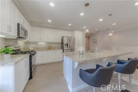 Located in the exclusive Central Park West community, this residence features the largest floor plan in the Madison development. This upgraded two-story end unit offers approximately 1,961 square feet with 3 bedrooms plus an office/den, easily convertible to a fourth bedroom. The first floor includes a private guest suite with an en suite bathroom and a spacious closet. The main living area on the second level features an open-concept layout connecting the living room, dining area, and kitchen. The kitchen is appointed with stainless steel appliances, a large custom island, and custom cabinetry. Additional features include a statement chandelier and pendant lighting, a Nest thermostat, and Hunter Douglas window treatments, including shutters and roller shades, which enhance the modern design. The second level also includes a conveniently located laundry room, the primary suite, a secondary bedroom, and the office/den. The primary suite features a huge walk-in closet, dual vanities, a separate toilet room, and a large glass-enclosed shower. Additional highlights include tray ceilings, high ceilings, a tankless water heater, central HVAC, a private balcony, and direct access to the attached garage. Central Park West offers resort-style amenities, including an Olympic-size saline pool, spa, clubhouse, recreation room, fire pits, BBQ areas, and a meditation garden. Ideally located near major freeways, John Wayne Airport, premier shopping, dining, and just minutes from Southern California beaches.