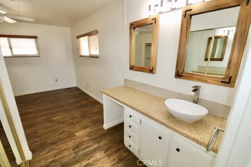 Senior Park Community 55+... What a perfect opportunity to own this bright, spacious 2-bedroom, 2 bath home with a GREAT LOCATION on the perimeter of the community! We begin our tour of this lovely home with the spacious living room dining room combination that features a fireplace that will remain with the home. This room also has plantation shutters on all the windows to bring in that nice bright sunshine. Looking past the living room, we see the large dining room with built-in cabinet with lighting. As we start down the hall, you will have the separate laundry to the right along with an updated/remodeled guest bathroom. Are you looking for that soaker tub? This tub is for you! The den is off the kitchen with access to that great sunroom. This room would make a great craft room, office or entertaining space. Just past the den area we see the lovely guest bedroom with its own access to that updated guest bath. We enter the large master suite with 2 large, mirrored closets, great dressing area with a vanity. The primary has its own bathroom with updated features. This home has newer double pane windows, copper plumbing, newer furnace and A/C unit, ceiling fans, recessed lighting and new laminate flooring throughout. Homes in this move-in ready condition are not lasting long on the market at this price! Look no further, come and see it today!