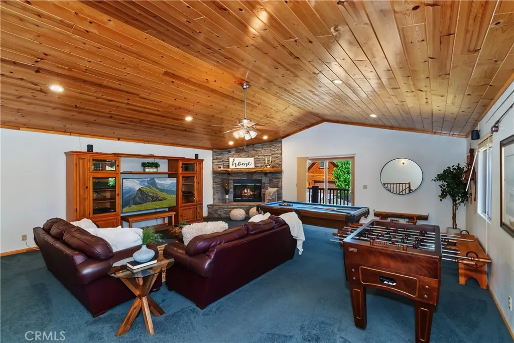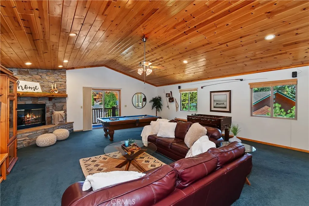 379 Fawntrail Place, Big Bear Lake, CA 92315 Welcome to 379 Fawntrail Place, an immaculate mountain home located in the highly sought-after Castle Glen neighborhood of Big Bear Lake. Nestled on a quiet cul-de-sac, this stunning property blends timeless mountain architecture, vaulted ceilings, and modern comfort with pride of ownership throughout. Featuring 4 spacious bedrooms, 3 bathrooms, 3 walk-in closets, and two gorgeous rock fireplaces, this home provides the perfect retreat for full-time living, a vacation escape, or an excellent short-term rental investment. With 2,672 square feet of single-level living space set on a generous 15,000 sq ft lot, this residence offers both privacy and functionality. Property Highlights Immaculate interior with vaulted ceilings, 2 stunning rock fireplaces, and pride of ownership Expansive great room with a dramatic floor-to-ceiling rock fireplace Second rock fireplace in the family/game room for cozy gatherings Huge family/game room with billiards table, wet bar, and space for entertaining Gourmet-style kitchen with custom cabinetry and abundant counter space 4 bedrooms / 3 baths, including a primary suite with a walk-in closet Native-scaped, manicured yard for low-maintenance mountain beauty Oversized two-car garage with excellent storage Cul-de-sac location in prestigious Castle Glen Estates Just minutes to Snow Summit, Bear Mountain, and Big Bear Lake Village Whether youre enjoying the crackling fire beneath the vaulted pine ceilings, relaxing in front of one of the two stunning rock fireplaces, or hosting friends in the spacious gam