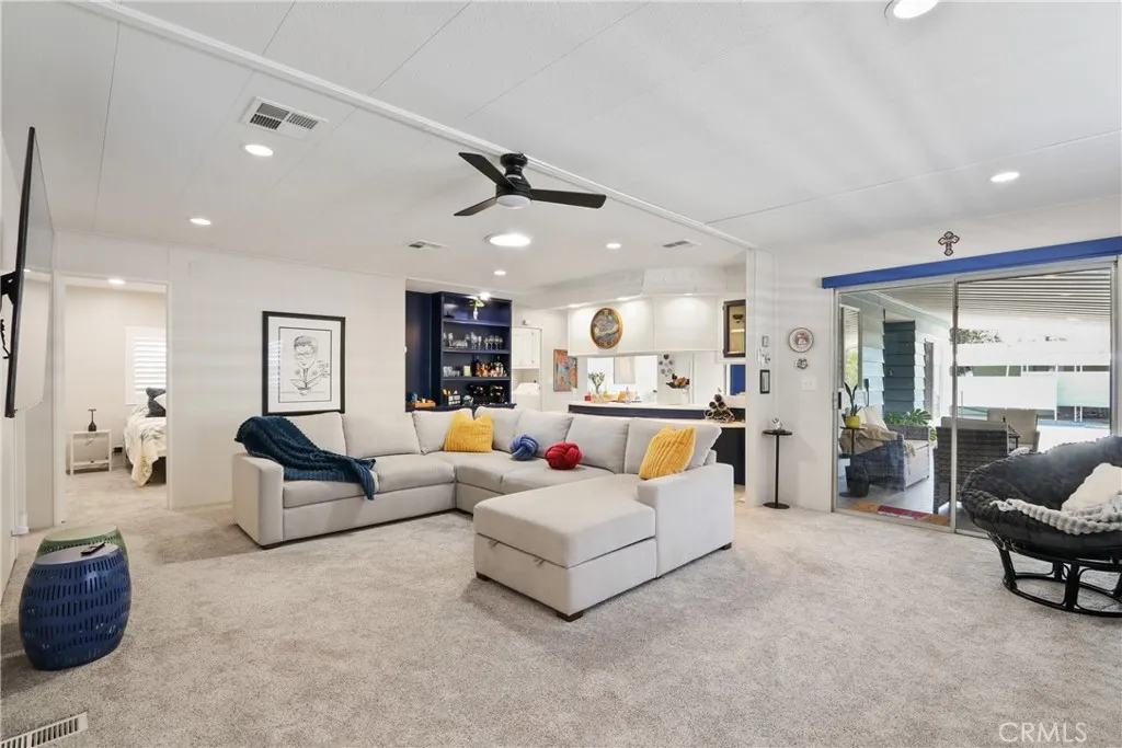 Simply Gorgeous Remodeled Triple-Wide in Twin Oaks (55+ Community) Absolutely turn-key, beautifully remodeled 2-bedroom, 2-bath triple-wide offering approximately 1,790 sq ft with a spacious open floor plan and abundant natural light. Move-in ready with extensive upgrades throughout. Beautiful bright colors enhance the home, creating a warm and inviting atmosphere. Lovely updated kitchen featuring abundant cabinet and counter space, plus a convenient breakfast bar open to the family room ideal for everyday living and entertaining. Large primary bedroom suite with a spacious bathroom and vanity area. Bathrooms include new toilets (including a premium Brondell toilet with bidet in the primary bath), new faucets, and new shower heads. Additional upgrades include recessed lighting throughout, New ceiling fans, motorized and manual shades, interior wooden shutters, fresh interior and exterior paint, outdoor motion lighting, refreshed landscaping, and a redesigned front porch with elegant tile work and handcrafted cedar railing & sunshades. Large open living room with dining area. Separate family room with built-in desk and shelving, perfect for a home office, hobby space, or reading area. Separate laundry room with direct access to the carport. Ramp provides convenient entry, and the extended carport/driveway offers additional parking flexibility. 2 large Sheds for all your belongings. Twin Oaks is a highly desirable 55+ community in La Verne, conveniently located near shopping, dining, public transportation, freeways, hospitals, and airports. Residents enjoy outstanding amenit