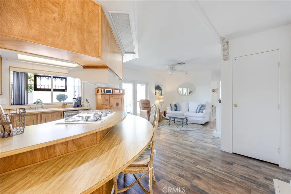* BONUS HUGE WORKSHOP ON PROPERTY * This home is located in the highly desirable 55+ community of Warm Spring Knolls, where you own the land no space rent. Situated on a permanent foundation, this property offers the added benefit of easier financing. Upon entering the home, youre welcomed by an open and bright interior featuring plantation shutters that enhance both style and natural light. The front living room features a dining area, creating a welcoming space for everyday living and gatherings. The thoughtfully designed floor plan offers two separate living spaces, ideal for flexible living, entertaining, or a cozy retreat. The second living area serves as a spacious great room that seamlessly connects the kitchen and living space, complete with French doors leading to a covered patio, a freestanding fireplace, and a ceiling fan. Relax indoors while enjoying the soothing sound of the outdoor water fountain, creating a peaceful and inviting atmosphere. The kitchen is open and bright, featuring an oversized counter perfect for convenient barstool seating, along with new stainless steel appliances. The primary bedroom is spacious, and the primary bathroom is large with plenty of built-in storage. The secondary bedroom and bathroom are connected, making it an ideal setup for guests. A spacious laundry room adds to the homes functionality. Step outside to enjoy side yards featuring a water fountain and grapevine trellis. The backyard is spacious, perfect for gardening, and offers added privacy with no home directly behind, as well as a shed for additional storage. You will a