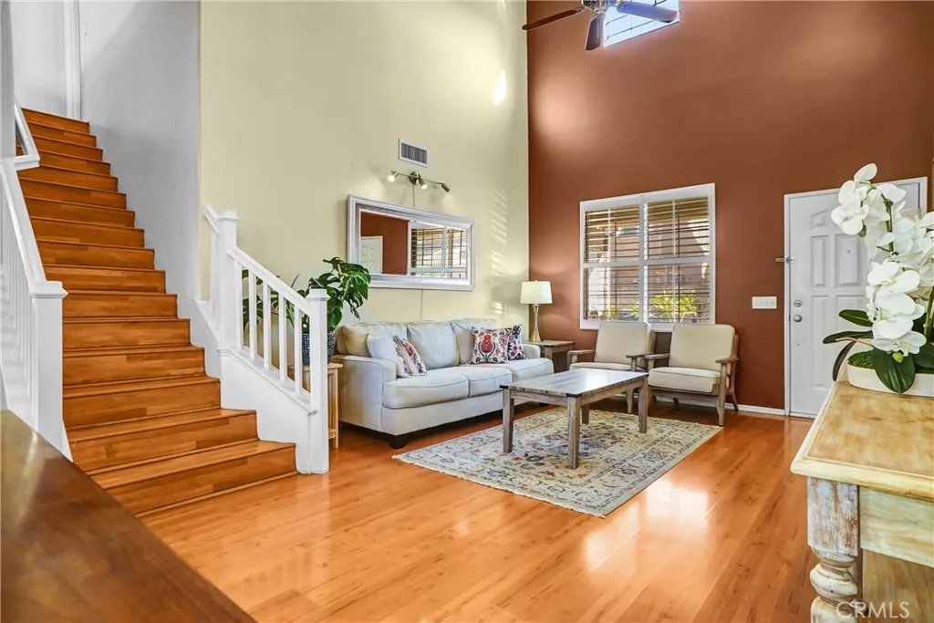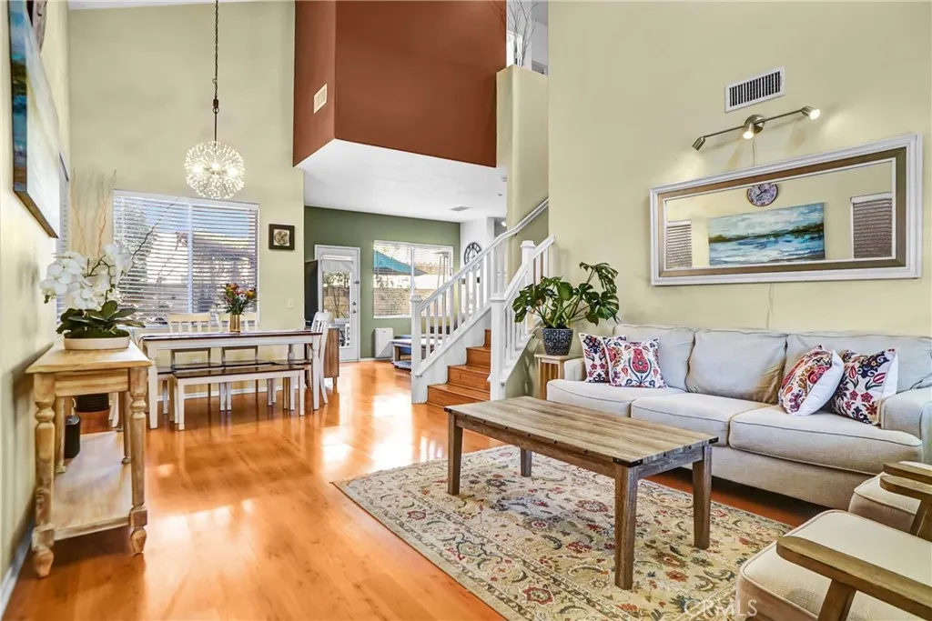 Set within a peaceful, gated neighborhood, this inviting Simi Valley home offers a bright, open layout designed for comfortable everyday living. High ceilings and generous natural light create an airy feel throughout the main level, where the living, dining, and kitchen spaces connect seamlessly for both relaxation and entertaining. The kitchen provides ample counter space and storage, making it easy to cook, gather, and enjoy. Upstairs, the primary suite serves as a private retreat with its own private ensuite bath, dual sinks, and a walk-in closet, while two additional bedrooms offer flexibility for family, guests, or a home office. A low-maintenance backyard extends the living space outdoors and is perfect for unwinding or hosting casual get-togethers. The added putting green is ready for short game practice. An attached two-car garage, in-home laundry, and central HVAC add everyday convenience. Residents of this gated community enjoy access to resort-style amenities, including a large pool and spa, beautifully maintained parks, and basketball courts, creating a vibrant and active environment just steps from home. With close proximity to shopping, schools, and commuter routes, the location blends privacy with practicalityan ideal setting for those seeking comfort, convenience, and community.