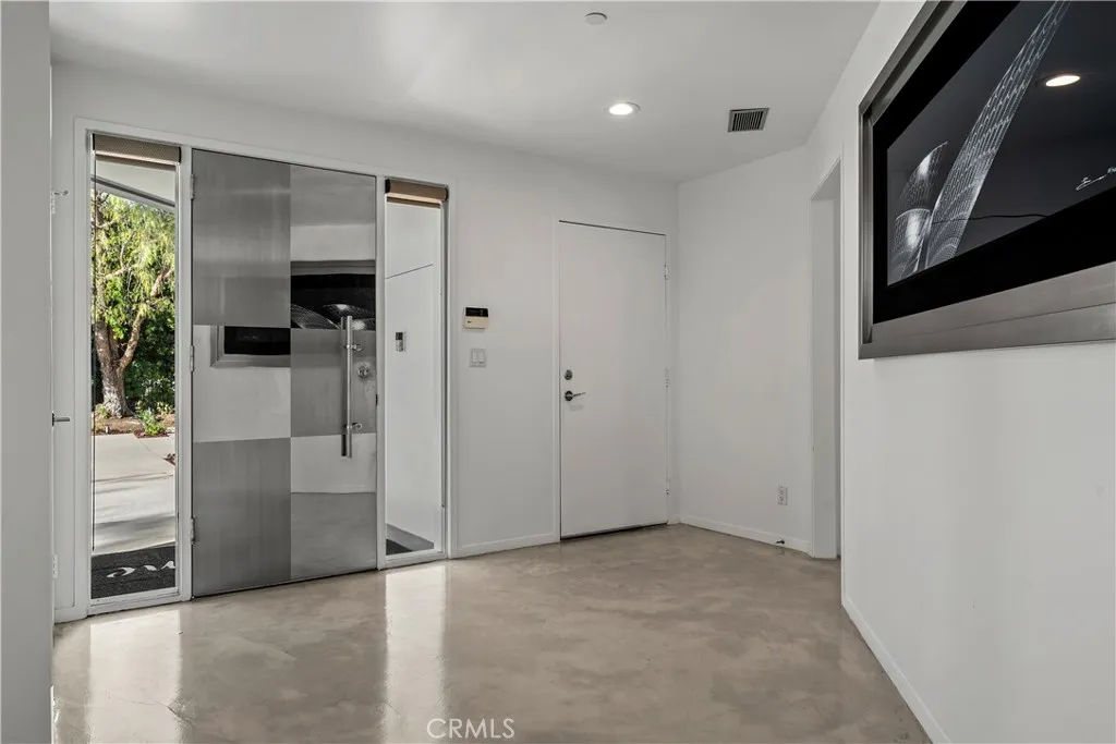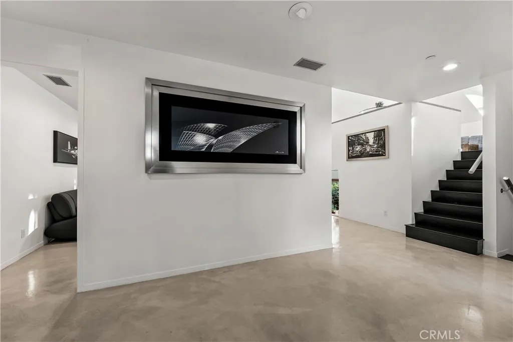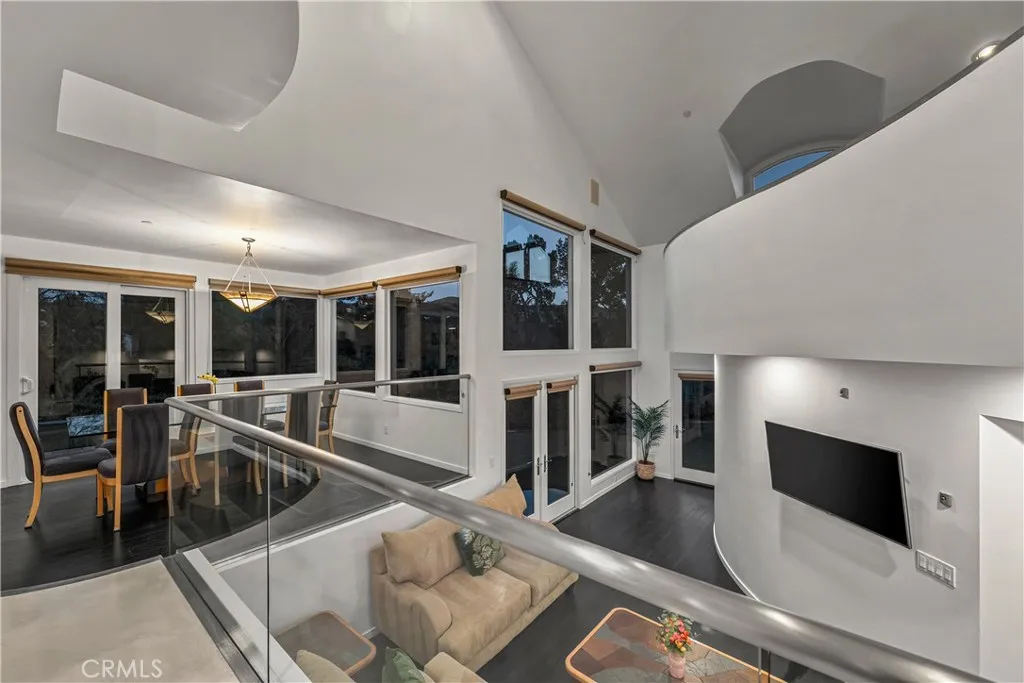 A rare and unforgettable architectural statement in the heart of Anaheim Hills, this privately set contemporary residence is a masterclass in design, light, and spatial experience. Positioned on an expansive 22,113 sq foot cul de sac lot, the home offers approximately 4,308 square feet of refined living where form and function exist in perfect harmony. Conceived and built by a renowned architect, the residence was designed to challenge convention and elevate everyday living. Sculptural curves, soaring ceilings, and dramatic sculptural walls invite an ever-changing play of natural light while framing captivating hillside and city light views. Every line, every material, and every volume was intentionally crafted to create a sense of openness, movement, and connection. At the heart of the home lies a striking multi-level composition anchored by a signature loft space that floats above the main living areas. This architectural centerpiece creates a rare living experience, offering both visual connection and spatial separation across the living room, dining area, kitchen, and entertainment spaces. It is a home designed to be experienced. The kitchen is both a focal point and gathering place, where form meets function through clean lines, stainless steel appliances, generous storage, and a distinctive curved breakfast bar that mirrors the homes fluid design. Natural materials enrich the interiors, including polished concrete floors, stainless steel detailing, smooth stucco finishes, and a serene primary suite bath finished in travertine with a soaking tub, glass enclosed shower,