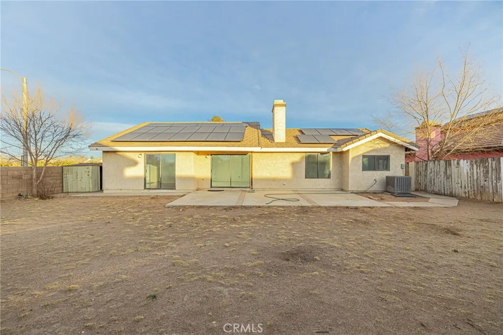 This charming 3-bed, 2-bath single-story home in Palmdale offers 1453 sqft of comfortable living space and is perfect for families. The property features a kitchen with a stove and dishwasher. The spacious interior is complemented by a large backyard, ideal for entertaining, gardening. This home is pet-friendly. The house also includes solar panels, providing significant savings with much lower bills, an eco-friendly and budget-conscious feature. Located in a quiet, family-friendly neighborhood, this home provides the perfect blend of comfort, convenience. Dont miss your chance to lease this beautiful property and make it your next home!