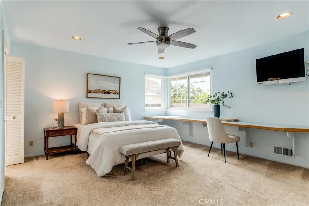 Near the opening to Edna Valley, within the Flower streets is this well-located generous 3 bedroom 3 bath home with recent improvements. Substantially single-level, the multiple updates include areas of kitchen, living area and dining, primary bedroom suite, second bedroom, as well as efficient office area. Upstairs is a third bedroom, but also ensuite with a walk-in closet, and built-in cabinetry with beverage refrigerator. The semi-private expansive entry patio with decorative gate is an entertainers retreat. Custom landscape design and plantings create a lovely setting, starting at the street. Citrus trees are a welcome feature too! Fully-owned solar installed in 2013, system is 3.57 kW. Mini-split HVAC systems in several areas of home provide both heat and cooling comfort. Location is ideal for access to sought-after schools, proximity to recreation and open space. Square footage source is County Records, but bedroom and bathroom count is different than public records.