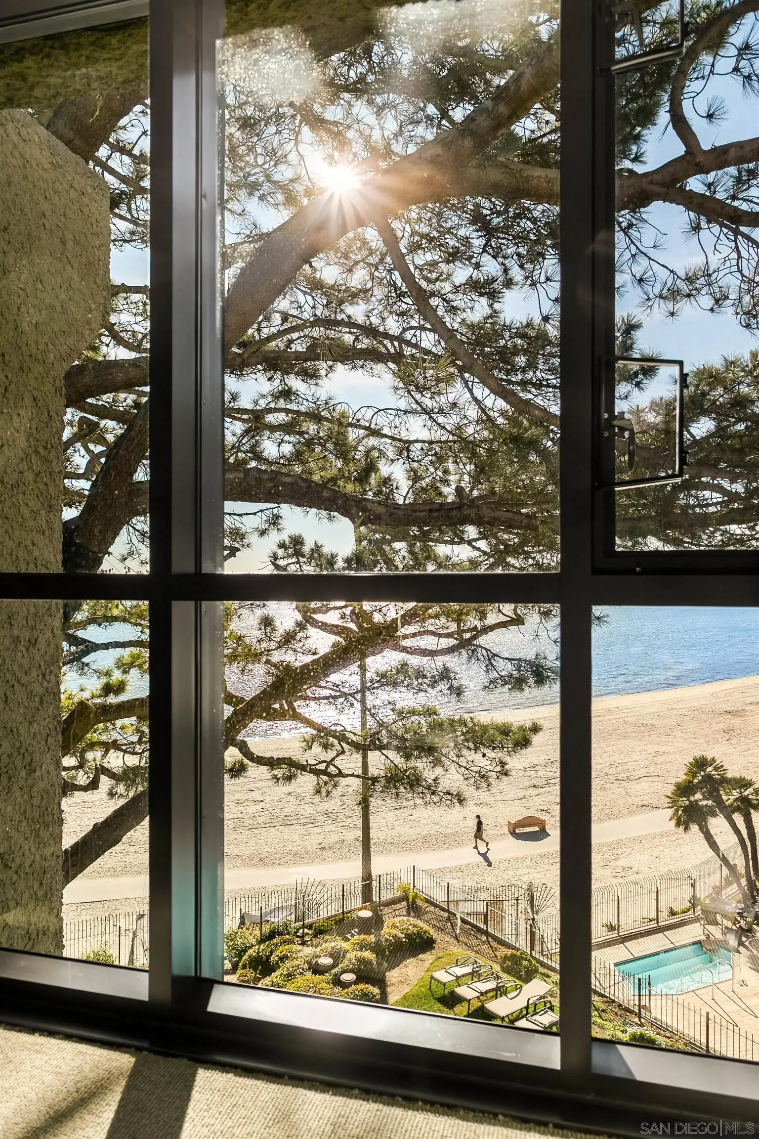 Gracing the shoreline of Sail Bay, this exceptional top-floor penthouse in Bay Scene’s coveted Tower One offers refined waterfront living with sweeping southwest views of the bay and Pacific horizon. Framed by a majestic 150-year-old Torrey Pine, panoramic vistas extend from the living room, dining area, kitchen, and both bedrooms. Spanning approximately 1,559 square feet, the beautifully renovated two-bedroom, two-bath residence is designed for privacy and functionality, with no shared living-area walls, ideal bedroom separation, marble surround fireplace, in-unit laundry, and ample storage. Timeless finishes include a remodeled kitchen with quartz countertops, soft-close cabinetry, and stainless-steel appliances. A covered balcony invites you to relax and enjoy the coastal scenery. The home includes two assigned underground parking spaces and access to a secure garage with car-washing area. Bay Scene is Sail Bay’s premier bayfront condominium community, offering resort-style amenities: a heated waterfront pool and spa, BBQ areas, fitness center, clubhouse, kayak and paddleboard storage, elevators, secure entry, and direct access to the sand and boardwalk. Just moments from the ocean, parks, shops, and dining, this rare penthouse delivers luxury coastal living at its finest.