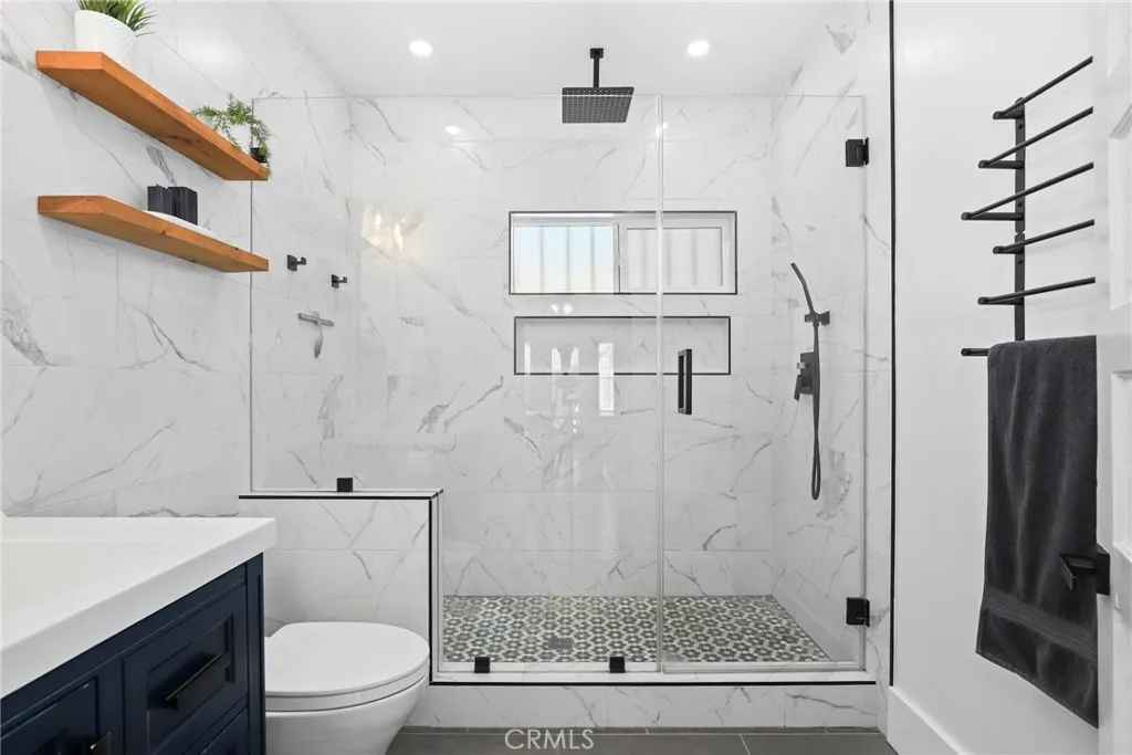 Proudly introducing this beautifully updated California bungalow in the Exposition Park neighborhood. This 3-bedroom, 1-bath residence offers 1,336 sq ft of thoughtfully designed living space that perfectly blends classic charm with modern upgrades. Upon entering, youre immediately welcomed by engineered hardwood floors and a desirable open-concept layout that seamlessly connects the living room, dining area, and kitchenideal for everyday living and entertaining. The living room features a modern fireplace, ceiling fan, and custom built-in shelving, creating a warm yet contemporary atmosphere. The kitchen is a standout, showcasing quartz countertops, custom cabinetry, a farmhouse sink, stylish tile backsplash, and stainless steel Samsung appliances. A conveniently located stackable washer and dryer add to the homes functional appeal. The bathroom is beautifully designed with a glass-enclosed shower, designer tile work, sleek modern vanity, and floating shelvesoffering a spa-like experience. All three bedrooms continue with the engineered wood floors and have a spacious appeal that flows perfectly with the home layout. Outside, the property continues to impress. Enjoy drought-tolerant front landscaping, a long driveway equipped with an EV charger and shade sails leading to the garage. The large 6,658 sq ft lot features an expansive backyard that features artificial grass, a quality pergola, and charming caf lightingperfect for gatherings or relaxing evenings outdoors. Ideally located just moments from USC, Leimert Park, and Exposition Parkhome to the Natural History Museum,