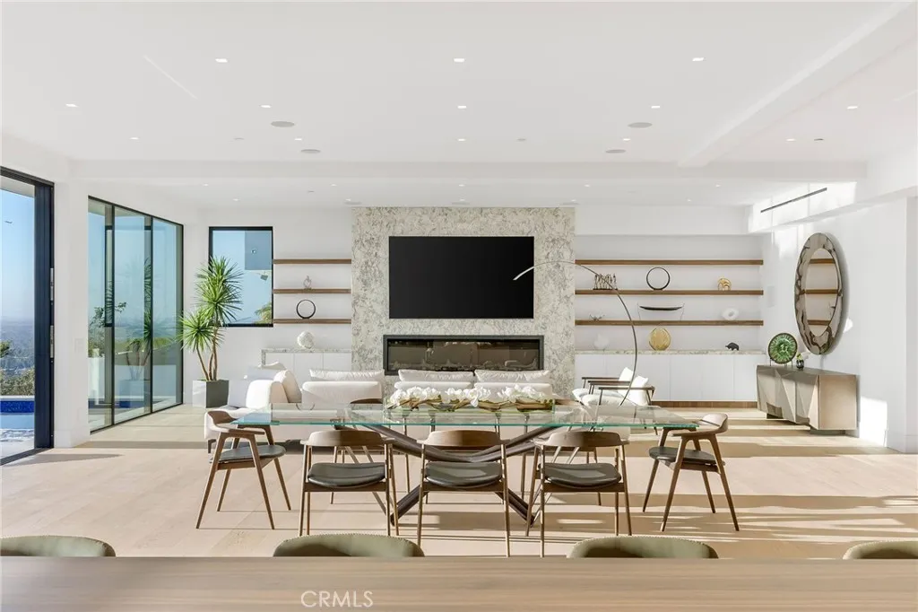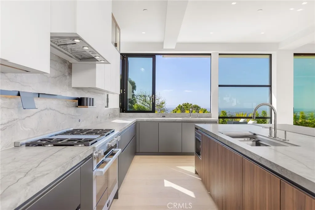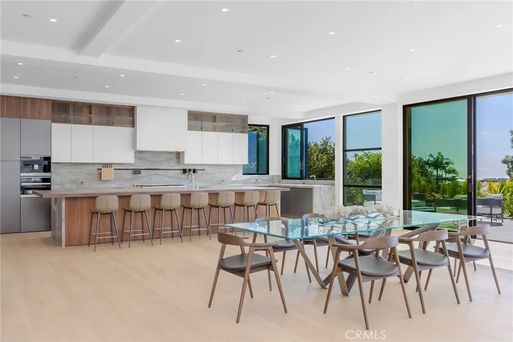 Experience coastal living at its finest in the prestigious, guard-gated community of Harbor Ridge. This new 8,000-square-foot trophy home redefines luxury with an open-concept floor plan and one-of-a-kind details. Unobstructed panoramic ocean views stretch from Newport Harbor to the Palos Verdes peninsula, offering Catalina sunsets and city lights. This modern masterpiece is the perfect atmosphere for family and entertaining, offering five bedrooms and seven bathrooms. Every space is generous in size and quality. All windows and exterior doors are made by Fleetwood, and all of the interior doors are works of art, imported from Italy. European white oak flooring is throughout the house. The home is furnished by Roche Bobois, Cantoni, and Natuzzi. The main level boasts floor-to-ceiling windows and doors, a large foyer with a freestanding curved staircase, living room, fireplace with a 100-inch TV, kitchen, dining room, guest bath, and bedroom/office. Seamless indoor-outdoor transitions lead you to an infinity-tile pool, hot tub, and fire pit. The massive kitchen includes a 17-foot-long island that seats seven, imported cabinets from Germany, and a large, separate pantry. Other features include two dishwashers, two sinks, Kallista faucets, and Miele and Gaggenau appliances. The upper floor offers the master bedroom, two suites, laundry room, and a TV room. The master bedroom is 22 ft. x 22 ft. and features 21-foot glass sliders with ocean views and city lights. The master closet will leave anyone in awe at its size and quality. The master bathroom includes marble slabs for dua