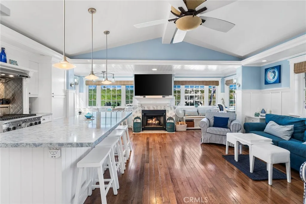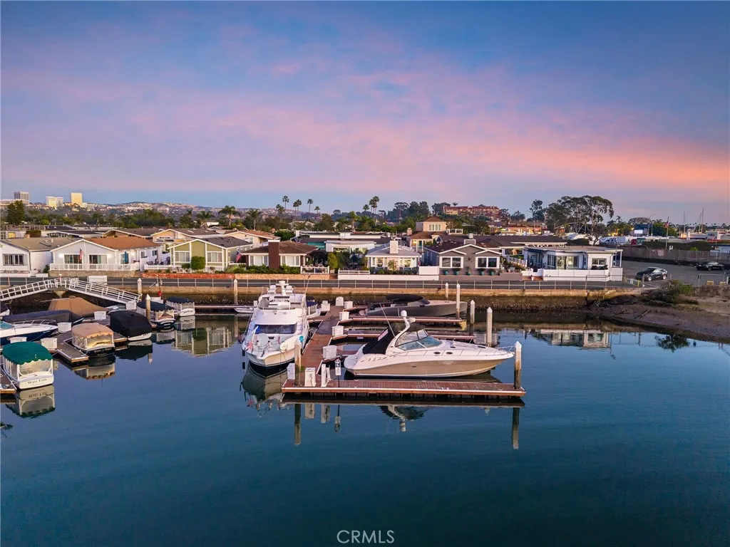 Waterfront living at an exceptional price under $1.2 million! This beautifully positioned, single-level waterfront home was thoughtfully remodeled in 2023 and located within one of Newports most desirable manufactured home communities, Bayside Village. The home offers a true waterfront lifestyle, including a transferable 50 private dock directly in front of the home, at a fraction of the cost of traditional bayfront real estate. Walk outside, untie, and cruise Newport Harbor within minutes with access to dining, fishing, beaches and the open Pacific. Situated directly on the water in Newports Back Bay, the home captures panoramic bay and sunset views. Inside, the home is bright, open, and inviting, with vaulted ceilings, skylights and a waterfront gourmet kitchen featuring a Quartz center island and Thermador appliances. The kitchen flows naturally into the living room, anchored by a stone fireplace and French doors that open to a large stone patio overlooking the bay. Hardwood floors, designer tile and remodeled bathrooms enhance the coastal aesthetic while maintaining a relaxed, livable feel. Expansive windows frame the water from multiple vantage points, filling the home with natural light and bay breezes. Outdoor living is abundant with an expansive waterside patio, ideal for sunset dinners, fire-pit gatherings, morning coffee or entertaining friends as boats pass by. An electric retractable awning provides shade when desired. The home is located on leased land within a well maintained waterfront community, currently $6,000 per month, offering a compelling financial adv
