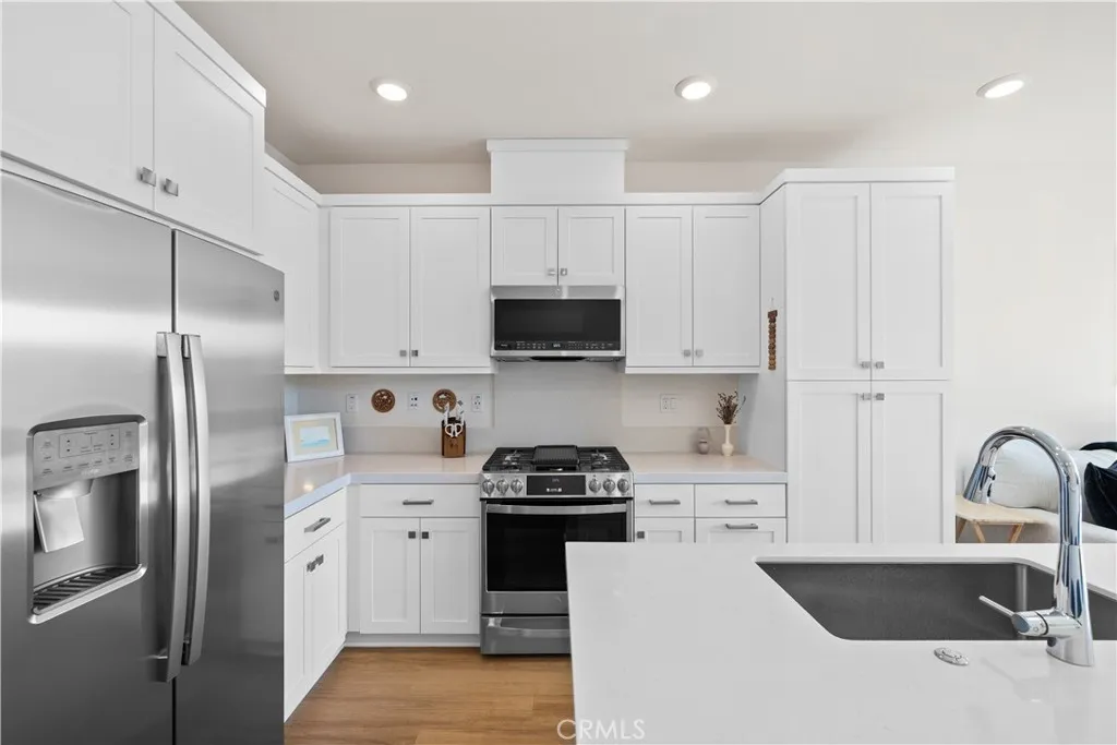 Your Foothills Retreat: Luxury 1-Bed Townhouse with Panoramic Mountain Vistas. A rare opportunity for the discerning buyer: this immaculate 961 sq ft, 1-bedroom, 1.5-bath sanctuary in the desirable Oasis community offers an effortless blend of lock-and-leave luxury and convenience. The home's centerpiece is the Upper Level's open-concept design, anchored by a gourmet kitchen. This space features premium, neutral selections including white shaker cabinets, Carrera quartz countertops, GE Profile stainless steel appliances, and engineered hardwood floors throughout. The spacious Master Suite is also privately situated on this level. The Lower Level is all about flexibility and function, offering a dedicated laundry closet, a powder room, a direct-access attached garage, and a flexible Bonus Room. This room is equipped with a built-in Murphy bed, making it perfect as a guest suite, home office, studio, or gym. Step outside to the oversized front patio to savor stunning, panoramic mountain and valley views that stretch for miles. Immaculate condition means zero work and maximum enjoyment of RMV's celebrated amenities. Enjoy refined resort-style living with access to Rancho Mission Viejos premier amenities, including a lagoon-style pool, spa, lap pool, state-of-the-art fitness center, and outdoor movement spaces. Miles of scenic trails, expansive parks, elegant clubhouses, an event barn, and thoughtfully designed social spaces create an elevated lifestyle, complemented by pet-friendly amenities including a dedicated dog park. This is the exclusive, sophisticated, lock-and-leave s