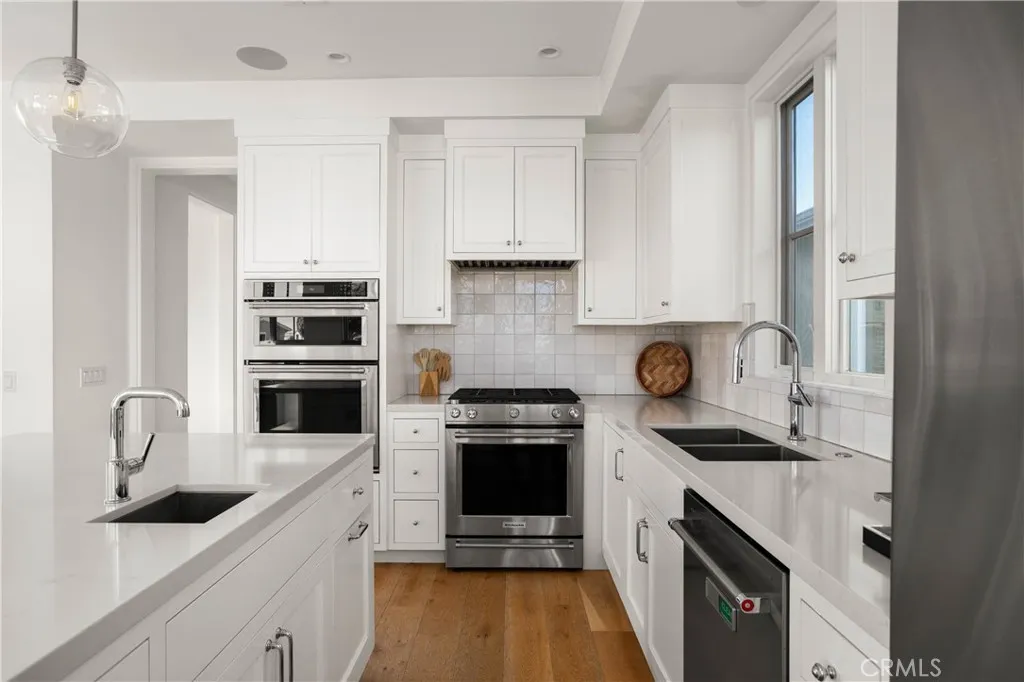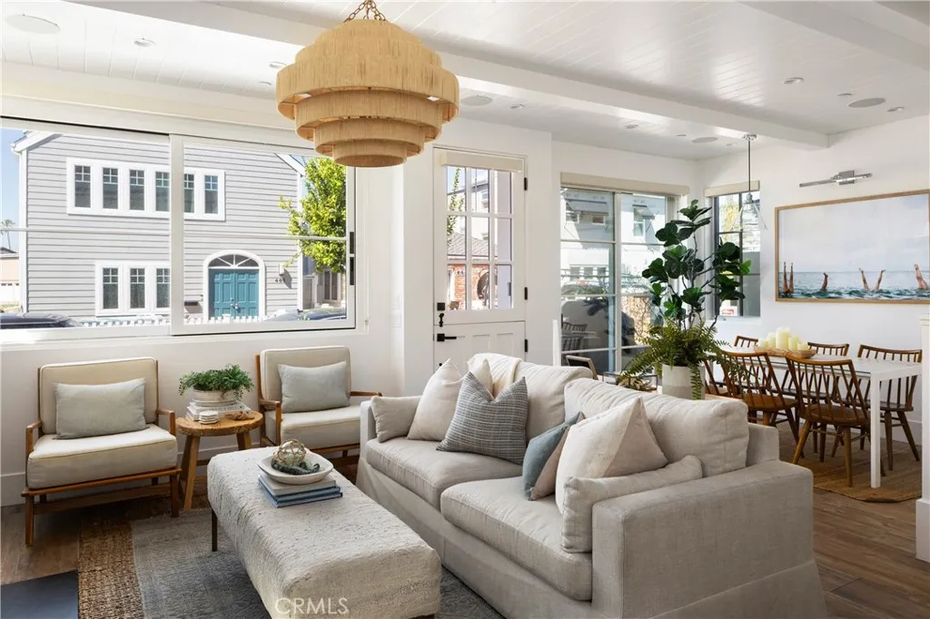 Nestled on the exclusive Newport Island within the highly sought-after Balboa Peninsula, this exquisite 2022-built duplex by Matt Clayton Builders offers an unmatched blend of luxury, versatility, and prime coastal living. Whether you dream of living in one unit while generating income from the other, creating a private retreat for extended family and friends, or exploring the potential for a condo conversion, this property is rich with opportunity. Situated on a corner lot, both units are thoughtfully designed to accommodate the future addition of an elevator, providing convenience and accessibility. The front unit radiates elegance with three spacious bedrooms, a dedicated office, and stunning hardwood floors throughout. At its heart is a chefs dream kitchen, featuring a sprawling porcelain island and top-of-the-line appliances. The kitchen opens seamlessly to the living area, complete with a cozy fireplace. Enhancing its appeal, the front unit includes a large private patioperfect for morning coffee, evening cocktails, or enjoying the coastal breeze. The rooftop deck is equally impressive, offering a fireplace, TV, refrigerator drawers, and a bar sinkideal for hosting gatherings under the coastal sky. A rare two-car garage adds convenience in this coveted beachside neighborhood. Equally captivating, the second unit offers four bedrooms and 3.5 baths, highlighted by sleek quartz countertops, double ovens, dual sinks, and a custom-built banquette providing cozy dining and additional storage. The light-filled living area features a charming fireplace. The second floor inclu