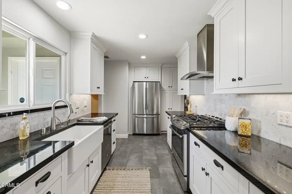 Welcome to 400 Atmore Drive, a beautifully updated hillside home in the heart of the desirable Heritage Valley. This move-in ready 3-bedroom, 2-bath residence offers sweeping views of South Mountain and a lifestyle that blends comfort, charm, and convenience. Perched on a corner lot at Atmore Drive and Richard Road, the lush, thoughtfully landscaped front yard creates a warm first impression with a vibrant mix of cactus, palms, citrus, and olive trees, along with raised garden beds nourished by Santa Paula's famously fertile soil. A newly constructed retaining wall enhances both usability and curb appeal, offering the perfect space for gardening or simply relaxing and taking in the surroundings. Inside, a welcoming entryway serves as the central hub of the home, guiding you to the bedrooms, kitchen, and living areas. The updated kitchen is both stylish and functional, featuring quartz countertops, under-cabinet lighting, a farmhouse sink, crown molding, stainless steel appliances, and tile flooring. Just beyond, the dining area flows seamlessly into the spacious living room, where wood floors, a sleek modern fireplace, and sliding glass doors invite natural light and easy indoor-outdoor living. Down the hall, you'll find the freshly painted bedrooms with wood flooring, an updated hall bath with marble finishes, and a private primary suite complete with dual closets and a beautifully upgraded shower featuring new tile, plumbing, and flooring. The attached two-car garage offers direct access and includes a dedicated laundry area with ample cabinetry and counter space for adde