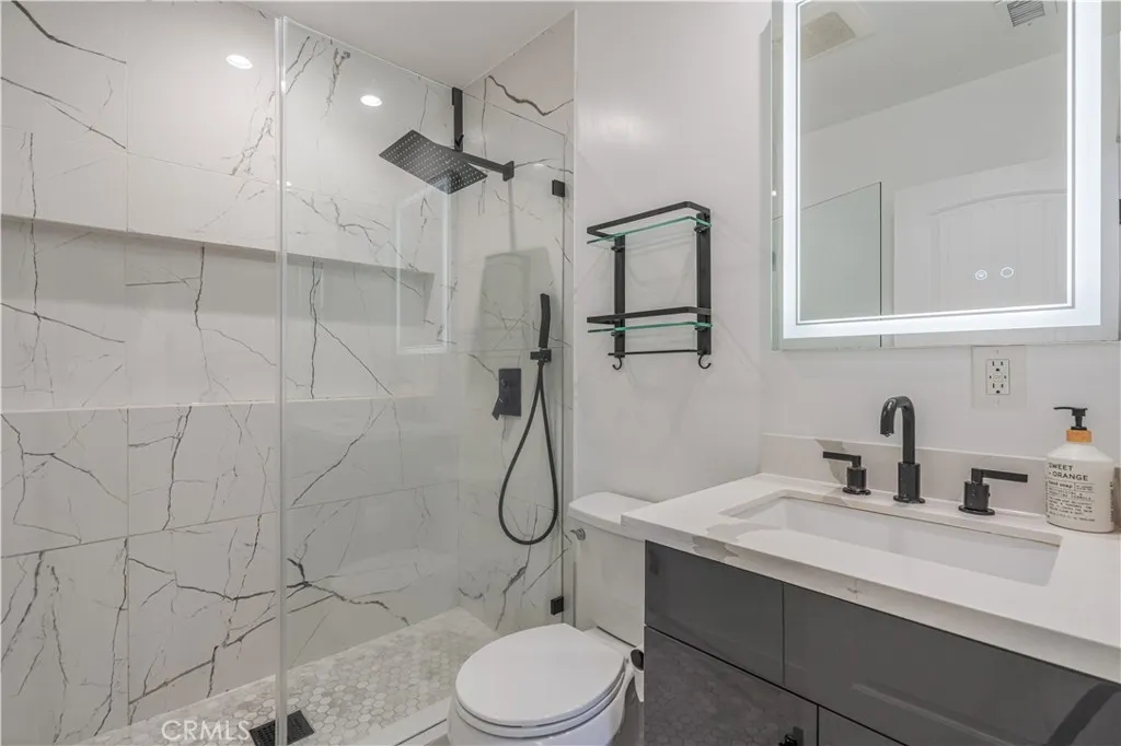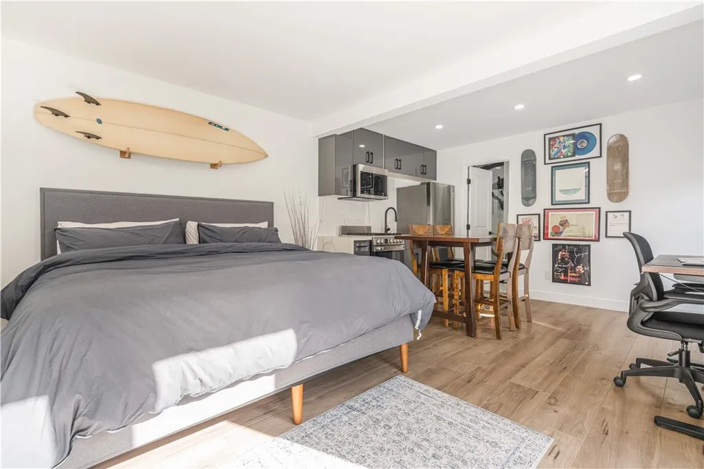 Tucked along a quiet, tree-lined street in the heart of Culver City, this sleekly reimagined single-story home makes a stunning first impression with its manicured curb appeal and a motorized front gate crafted from Brazilian hardwood. The property features a 3 bedroom, 2 bathroom main residence (approx. 1,470 sq ft) plus a detached 1 bedroom, 1 bathroom bonus studio (approx. 357 sq ft), blending modern design with functionality. Extensively renovated in 2021 and fully turnkey, the home features updated electrical and plumbing, new HVAC, tankless water heater, and upgraded systems throughout. The main home offers a bright, open concept floor plan filled with natural light and recessed lighting. The chefs kitchen serves as the homes centerpiece, with a massive quartz waterfall island, high gloss cabinetry, and professional grade appliances. The living and dining areas connect effortlessly around a sleek minimalist fireplace. The bedrooms are spacious and serene, and the bathrooms feature custom stonework and contemporary finishes. The backyard includes a deck with a sun shade sail and multiple lounge areas. At the rear, the detached bonus studio with kitchenette and bath offers flexibility as a guest space, office, or gym, complete with Cantina bifold doors and a walk-in closet. A long gated driveway provides ample parking and leads to the detached two car garage. Located within the award-winning Culver City Unified School District and just minutes from Westside dining, retail, and parks, this home captures the best of Culver City living in a peaceful residential setting.