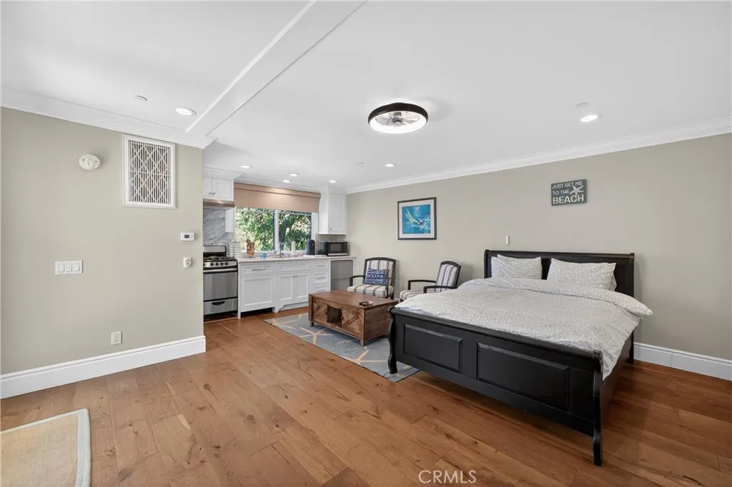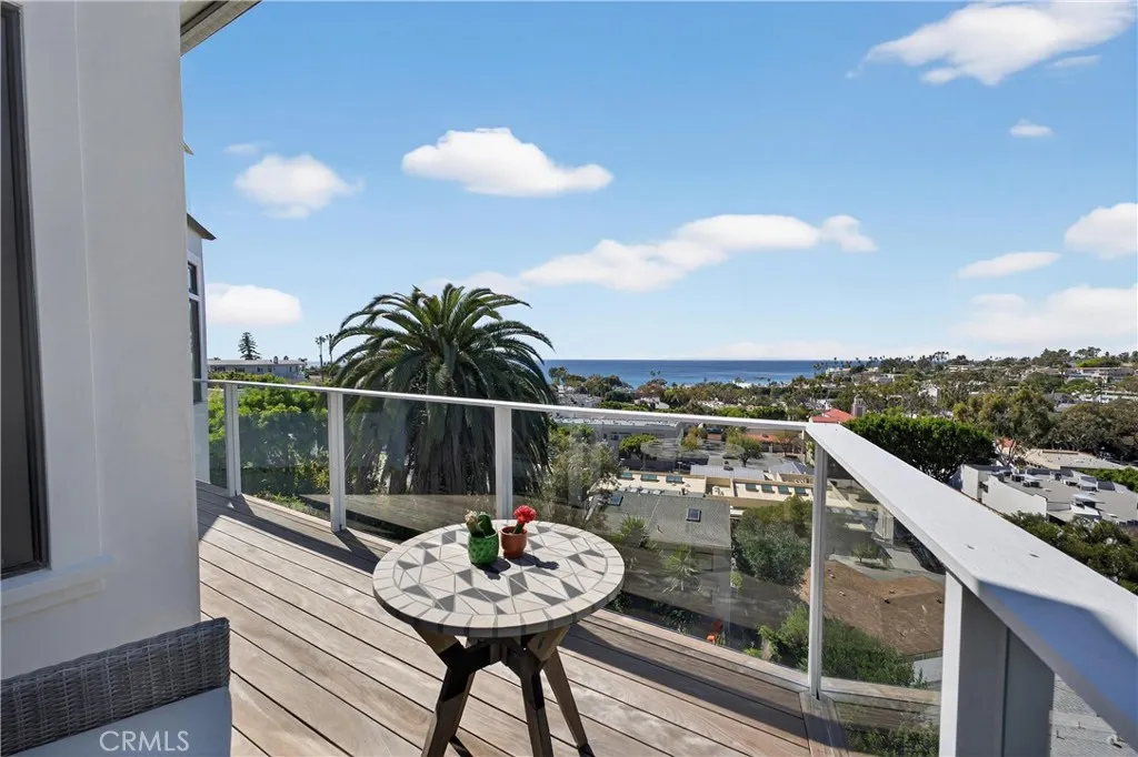 Located on a quiet cul-de-sac, this exceptional Laguna Beach residence boasts stunning ocean views from all three levels. Originally remodeled down to the studs in 2016 and expanded with a second addition completed in 2025, resulting in approximately 3,500 square feet of refined living space, including a ~400-square-foot legal casita, for a total of five bedrooms and seven bathrooms. The home captures sweeping whitewater, Catalina Island, and city-light views, while remaining just moments from the Village. Designed in a sophisticated Transitional Beach Craftsman style, the property blends coastal elegance with thoughtful architectural detail. The private casita, positioned across the courtyard, includes a full kitchen and laundry ideal for guests or extended stays. Exterior highlights include smooth white stucco, Italian tile, Epi decking, copper-trimmed gutters and caps, and curated outdoor living spaces with a fire pit, barbecue area, and hot-and-cold outdoor shower. Throughout the home, craftsmanship is evident in the beamed and boxed ceilings and carefully selected finishes. The main level is defined by an open-concept layout and expansive 180-degree ocean views. The gourmet kitchen is appointed with Viking and Sub-Zero appliances, a walk-in pantry, Carrara and Bardiglio marble countertops, custom cabinetry, wood-clad pass-through windows, and expansive bi-fold doors that open to ocean-facing terraces. The home is equipped with three washer and dryer stations for convenience and flexibility. Each bedroom features a private en-suite bath. The primary suite is a serene re