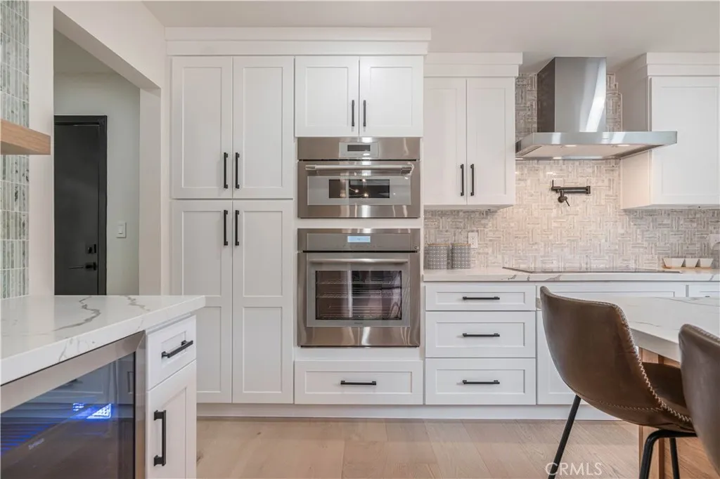 Nestled in the hills of Sherman Oaks, this modernized traditional has been completely gutted to the studs and thoughtfully reimagined with elevated designer finishes throughout. This masterpiece offers 3 BR + 3.5 BA, 2,127 sq. ft of living space set on a 8,800 sq. ft. lot with every detail reflecting quality craftsmanship and timeless sophistication. Upon entry, you are welcomed by soaring vaulted ceilings and a stunning family room highlighted by exposed beams and dramatic walls of glass that frame the lush mountain hillside and opening to large balcony. Natural light pours in, creating a bright, open atmosphere that seamlessly blends indoor and outdoor living. The chefs kitchen is beautifully appointed with custom cabinetry, quartz countertops, Thermador SS appliances, wine fridge and center island flowing effortlessly into the dining area and family room, making it ideal for both everyday living and entertaining. The expansive primary suite which opens to the terraced backyard offers a true retreat, featuring a generous walk-in closet and a spa-like bath complete with dual sink vanities, a separate soaking tub, and a glass-enclosed shower. A spacious secondary bedroom is also located downstairs, offering an en-suite bath and tranquil views of the surrounding greenery. Additional highlights: Wired for WIFI, TV in each room and sound system w/speakers in Living rm., dining area, kitchen, and outdoors. Relax in your spacious lounge area with fire pit. The lower part of the backyard is a huge flat pad - build a pickle ball court or large pool. This exceptional home captures