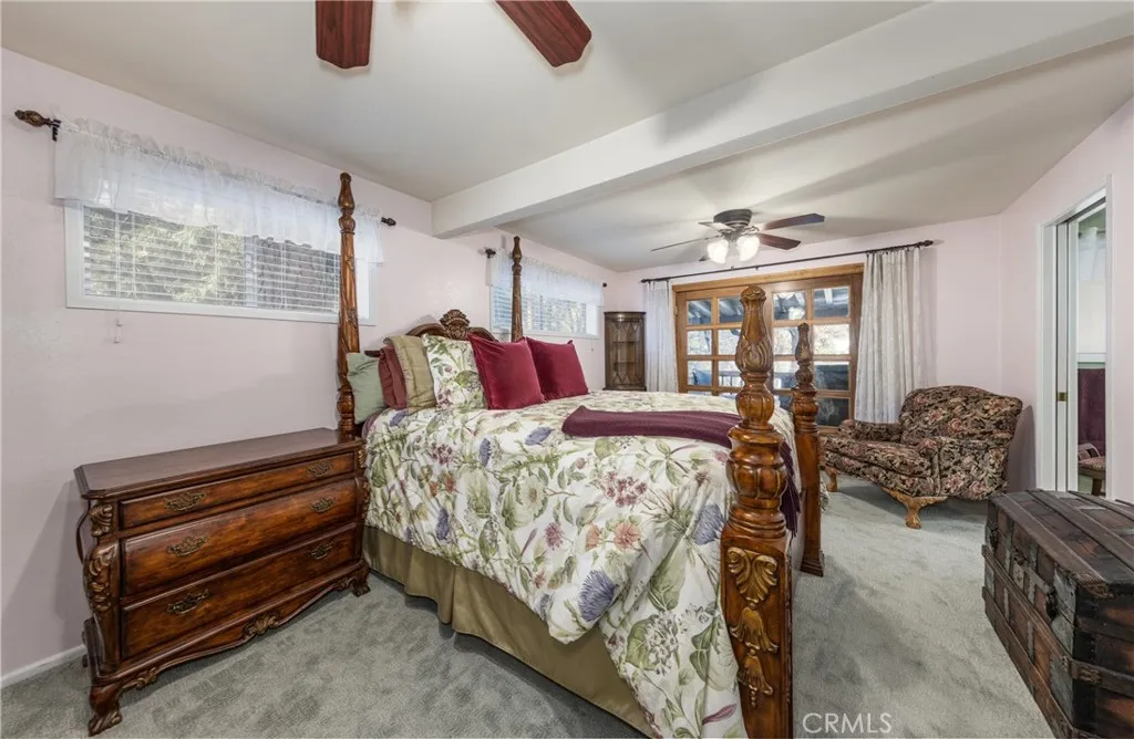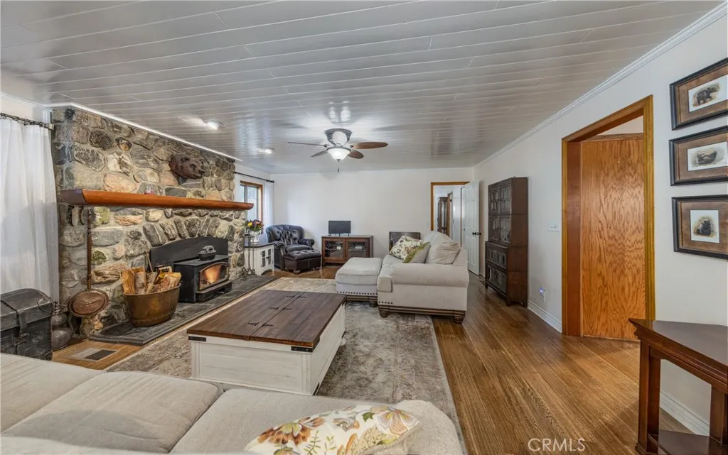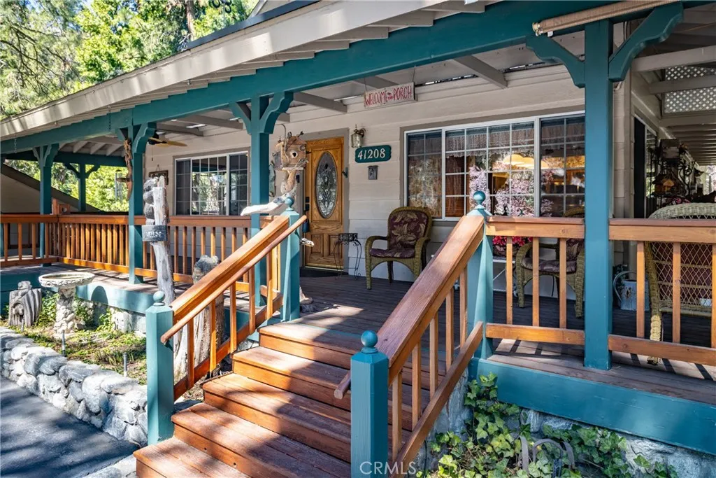 Price Reduction ~~ A True Mountain Beauty. This Rare find on an huge Lot, 12400+ sf, features a 5 car Oversized Garage, 1 for RV & additional RV side parking for any extra toys. Beautiful 5 bedroom 2 bath home set in the serene town of Forest Falls has everything you have dreamed of. Covered wrap around Porch invites you into this Gem with Gorgeous Wood Flooring, Updated kitchen with Stainless Steel appliances featuring double refrigerators, Granite counters, recessed lighting & wood burning stove. The open Living room will shine when your guests gather at the Stone fireplace & wood burning insert. Lower level Primary bedroom with deck & your own Spa, Primary bath with walk in closet, 4 Spacious, carpeted Bedrooms up stairs with full bath & Bonus rooms for kids &/or your Crafting needs. Indoor Laundry area includes the washer/dryer, sink & extra cabinets, Landscaped yard w rock pathways & planters, a garden shed/green house & workshop for the wood worker? Additional shed for lawn/garden equipment. Front facing deck to take in the crisp morning air & Rock water feature with pond. Home is equipped with leased Solar & battery back up and owned Propane tank EV charging outlet in garage & electrical hookups for RV area. Additional parking in front of the home & easy to access the street with circular driveway. Close to Redlands shopping & restaurant area approx 20 mins away & just down the hill from Big Bear. Seller has FEMA letter stating flood ins is not required (recommended) So much to see in this Beauty, Make your appt Today !!