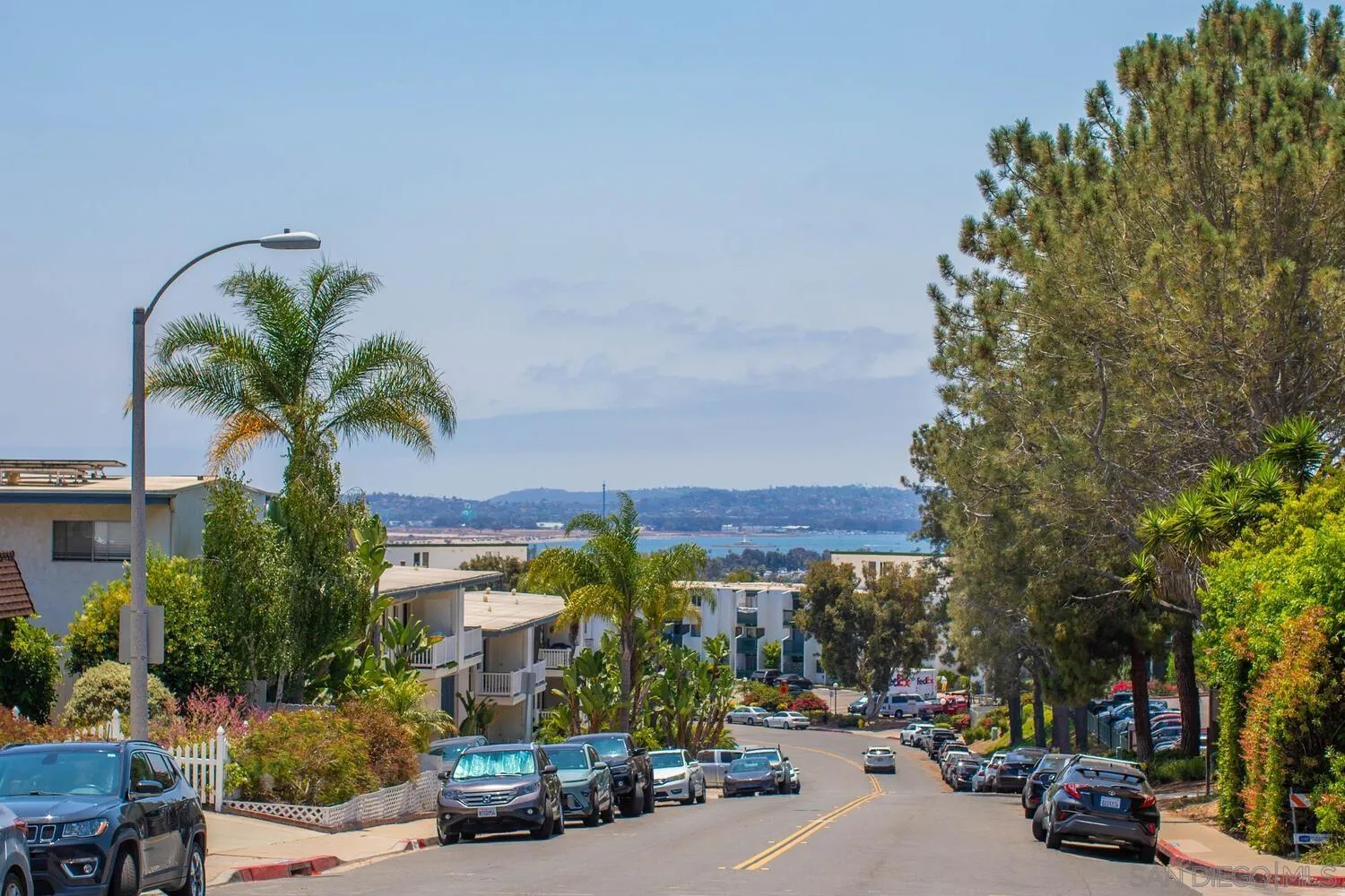 Beautiful split level home in Bay Ho with Mission Bay views on a canyon. This updated 4 bed, 2.5 bath home offers 1,926 sq. ft. of spacious living on a 10,600 sq. ft. lot that extends into the canyon. Enjoy breathtaking views of Mission Bay from various vantage points throughout the home. The living room features a fireplace and vaulted ceilings which create an open and airy feel. The gourmet kitchen has granite countertops, wood cabinetry, new refrigerator, and an island. Spacious family room with wet bar and half bath with direct access to the lower patio. The primary suite has a balcony to enjoy the views and an en-suite bathroom with marble countertops. Upgrades include leased solar, brand new interior paint, new carpet in bedrooms and living room, water softener, and low maintenance artificial turf front yard. The fully fenced backyard features a sparkling pool, hot tub, and multiple entertaining areas. There is also an attached 2 car garage with a large driveway. Located just minutes from Mission Bay, world class beaches, local restaurants, new trolley, and easy freeway access. Enjoy the best of coastal living in this expansive home with beautiful bay views. Living room, dining room, and family room have been virtually staged.