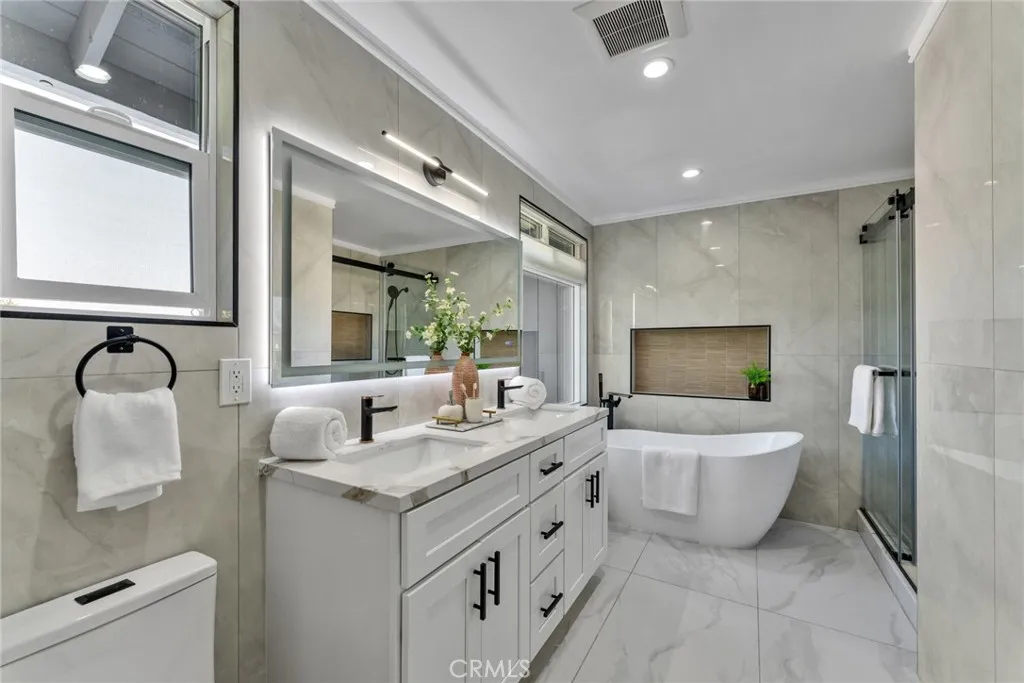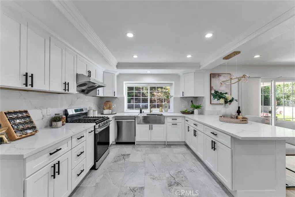 Beautifully upgraded two-story home located in a desirable neighborhood and surrounded by lush greenery that provides a peaceful and private setting. The seller invested over $200,000 in upgrades, including a brand-new kitchen, new 4 bathrooms, new windows, laminate flooring, fresh interior paint, modern lighting, sensor-activated LED stair lights, 3 years old central A/C, a tankless water heater, and a newly built patio with skylights. The home offers approximately 2,520 sq ft of living space with 4 bedrooms and 4 bathrooms. Additional storage includes an approximately 8' x 10' storage room and an extra sq footage of a hidden 8' x 8' storage space that is not includd in the total living area in the primary bedroom. This spacious home offers 4 bedrooms and 4 bathrooms with approximately 2,520 sq ft of living space on a large flat almost 10,000 sq ft lot. The bright open floor plan features high ceilings and a first-floor bedroom suite with a private bath, perfect for guests or multi-generational living. Upstairs includes a spacious primary bedroom and two additional bedrooms. Additional features include PEX plumbing installed in 2018 (except refrigerator line) and a 3-car attached garage. The large backyard offers great potential for outdoor living and entertaining. Conveniently located close to shops, schools, and with easy access to Freeways 60, 10, 57, and 71.