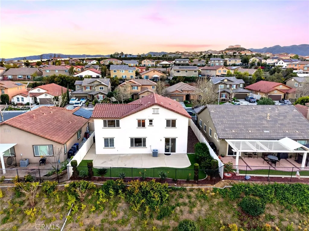 Welcome to this beautifully appointed home located in the highly desirable Alberhill Ranch community of Lake Elsinore. Situated on a large elevated view lot, this spacious 5-bedroom home plus downstairs office offers 3 full bathrooms, a functional open floor plan, and stunning scenic mountain views. Step inside to an abundance of natural light and expansive living spaces designed for both comfort and entertaining. The upgraded kitchen features granite countertops, stainless steel appliances, a large center island with bar seating, generous cabinetry, and a convenient butlers area. The kitchen opens seamlessly to the breakfast nook and oversized family room, creating the perfect gathering space while offering views of the backyard and surrounding hills. The flexible floor plan includes a downstairs guest bedroom and full bathroom along with a private office, ideal for multigenerational living or working from home. Upstairs youll find four additional spacious bedrooms including the oversized primary suite filled with natural light and beautiful views. The upgraded primary bathroom features dual vanity sinks, a walk-in shower, separate soaking tub, and a walk-in closet. A convenient upstairs laundry room and dual zone HVAC adds everyday functionality. Outside, enjoy excellent curb appeal and an elevated lot with unobstructed mountain views, creating a peaceful setting for relaxing or entertaining. Residents of Alberhill Ranch enjoy fantastic community amenities including resort-style pools, a splash park, clubhouse, parks, playgrounds, and miles of scenic walking and hiking tr