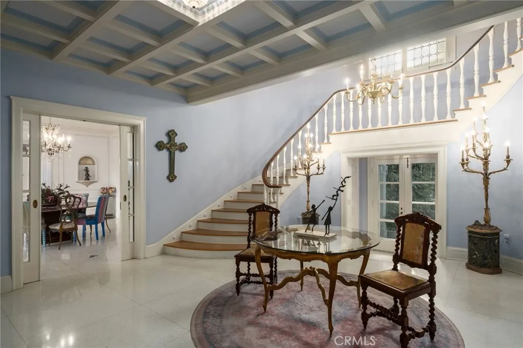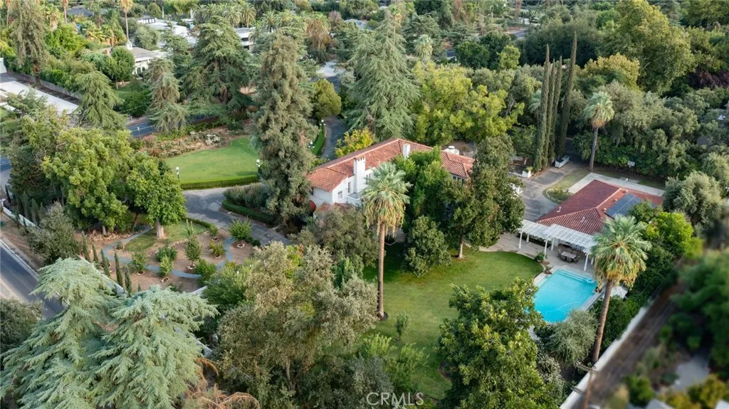 This 1928 Sunset Boulevard Mediterranean Revival residence, situated on a 1.76 acre lot on Christmas Tree Lane in Old Fig Garden, was designed by renowned architect Rafael Lake for the Bernhauer family. As President of the then Fresno Planing Mill Co., Mr. Bernhauer infused his vision and craftsmanship into every detail of this home, which includes Mahogany millwork archways, coffered ceilings and so much more. As you enter thru the Arch Top Mahogany Double Doors, you are greeted by a Grand Foyer and a beautiful curved staircase. To the right is the Spacious Formal Living Room offering a stunning Fireplace, an adjacent elevated sitting space, and to complete this wing of the home, an Isolated Bedroom w/En-Suite Bath. To the left of the Foyer is the grand Formal Dining Room, boasting a Curved Bay Window that floods the room with natural light and can accommodate a large gathering of family and friends. Two Butler Pantries, both with sinks and an abundance of counter space, expand on the spacious Kitchen space for entertaining. A second staircase to the upstairs is situated between the two Butler Pantries, as well as the stairs to the basement which boasts a beautiful Wine Room. The Chef's Kitchen features Exquisite Portuguese Tiles, Wolf Range, Wall Oven, Built-in Refrigerator, Built-in Griddle, Informal Dining Area, and a Pantry. A lovely Studio/Family room is located adjacent to the Kitchen and offers a Fireplace and a wall of Shuttered Windows, which makes it a perfect room for relaxation. The over-sized Laundry Room featuring a Sink, ample Counter Space, Washer/Dryer and
