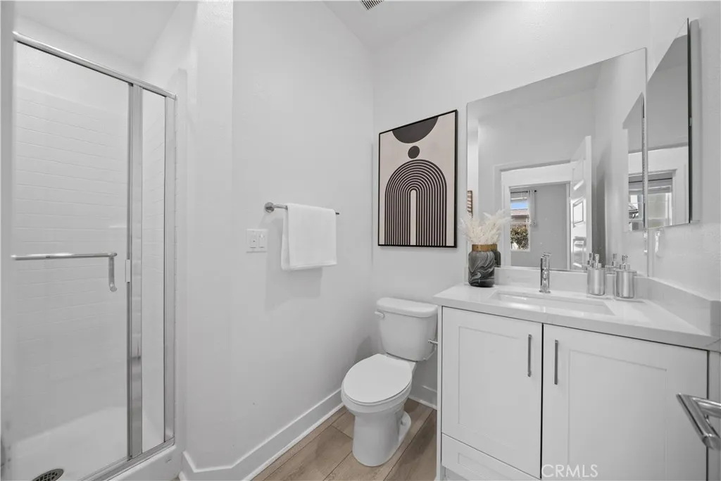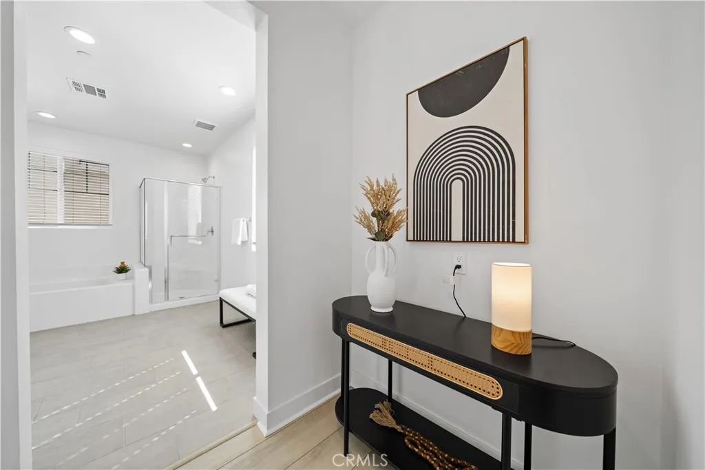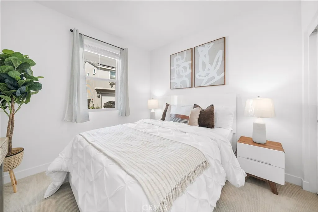 Beautiful north-south facing detached single-family home located in the core of the highly desirable master-planned Ontario Ranch community in Ontario. Offering 4 bedrooms and 3 bathrooms with approximately 2,053 sq.ft. of open-concept living space. The first floor features a convenient bedroom and full bathroom, ideal for guests or multi-generational living. Upstairs includes a spacious primary suite with dual vanities, soaking tub, separate shower, and walk-in closet, along with two additional secondary bedrooms and a shared full bathroom. The modern kitchen showcases white cabinetry, quartz countertops, stainless steel appliances, and a large center island that flows seamlessly into the dining and living areas. Fully paid-off solar provides long-term energy savings. Community amenities include a clubhouse and swimming pool. Prime central location directly across from a major shopping plaza featuring 99 Ranch Market, Costco, and In-N-Out, with easy access to the 60 and 15 freeways, and just minutes from Ontario International Airport and Ontario Mills. Move-in ready home in a highly convenient and thriving neighborhood. Move-in ready home offering comfort, convenience, and exceptional location.
