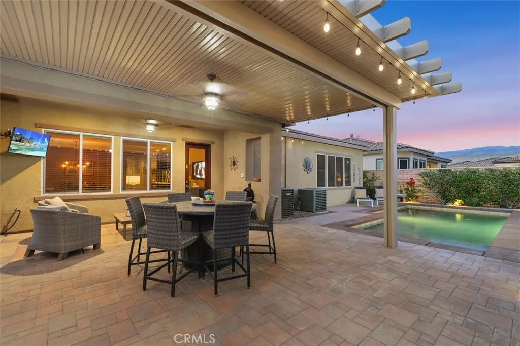 Escape to the tranquil beauty of Casa Terra Lago, nestled within the gated 55+ community of Four Seasons Terra Lago. This charming retreat offers the largest floor plan in the neighborhood with three spacious bedrooms, a versatile den with a pull-out sofa bed, and three full bathrooms. Enjoy a fully furnished interior, an open-concept kitchen and living area, and a private heated saltwater pool with an outdoor TV and firepitperfect for entertaining or relaxing. The community features resort-style amenities including two golf courses within the Four Seasons Terra Lago community, a clubhouse with indoor/outdoor pools, spa, gym, and courts for tennis, pickleball, basketball, and bocce ball. Located in the heart of Indio, Casa Terra Lago provides convenient access to hiking trails, mountain views, and local attractions. Streaming services provided via high-speed internet; wired for cable TV service. Natural light fills the home, highlighting tasteful furnishings and the homes spacious layout. The well-appointed kitchen flows seamlessly into a cozy living area, perfect for preparing meals or lounging after a day in the sun. Step outside to your private backyard oasisfeaturing a shimmering saltwater pool and built-in BBQ grill ideal for laid-back evenings under the stars. Unwind in peaceful bedrooms after enjoying the community's offeringsfrom rounds of golf and walks through the neighborhood to relaxing dips in the pool or spa. This home requires a minimum 30 day rental.