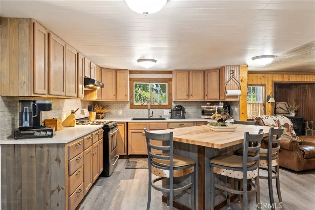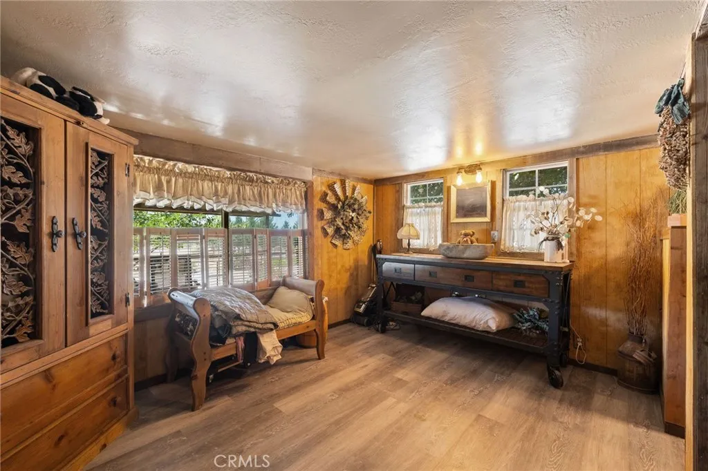 Enjoy 5 acres on your private ranch retreat, this 2B/2B 1,496 sqft home is the perfect match for horse enthusiasts and serious ranchers. The property is fully equipped with everything you need for livestock & equestrian living, including a cattle chute with run-up, multiple stalls with turnouts, a dedicated riding arena, and a spacious 60-ft round pen. Shade structures keep your animals comfortable year-round, while a covered hay barn with tack rm, trailer parking, and a large workshopcomplete with electricity, bathroom, and oversized vehicle doormake storage, repairs, and projects simple and convenient. Additional property highlights include a drip irrigation plus dog kennels with nearby water access. Inside, rustic charm meets modern functionality. The kitchen showcases a butcher block island, quartz-look laminate counters & warm wood cabinetry. The living rm offers inviting wood accents, a pellet stove with thermostat, and durable laminate flooringperfect for everyday ranch life.