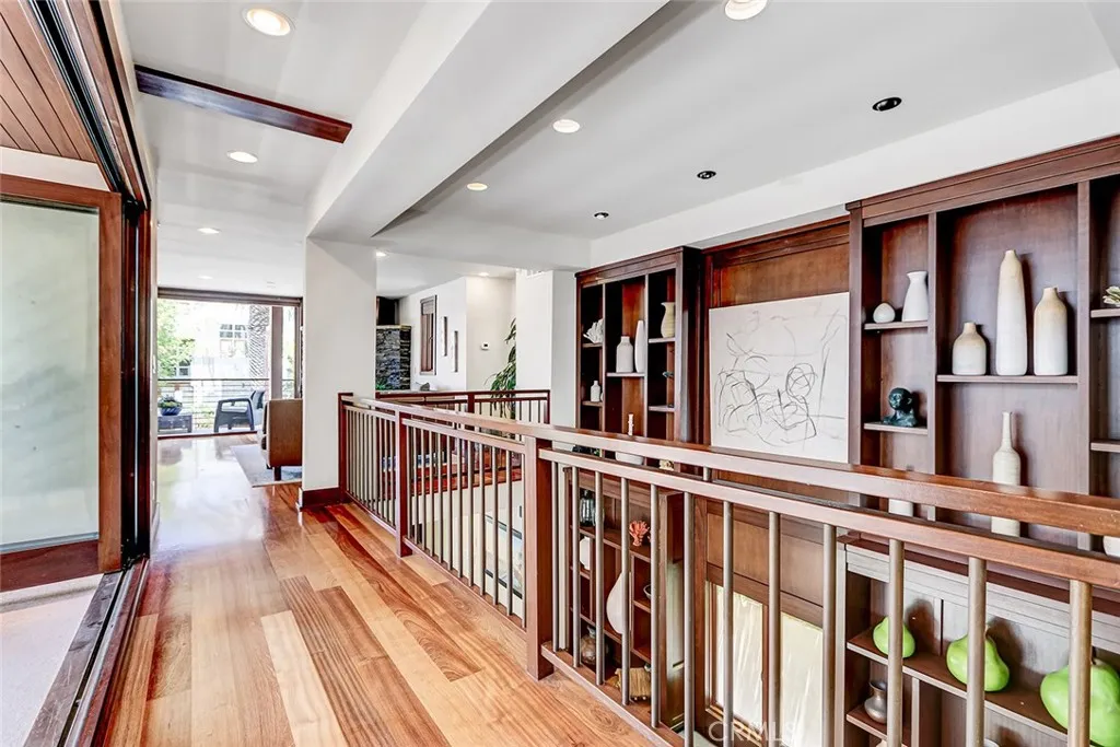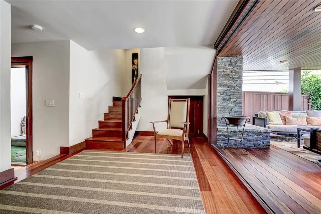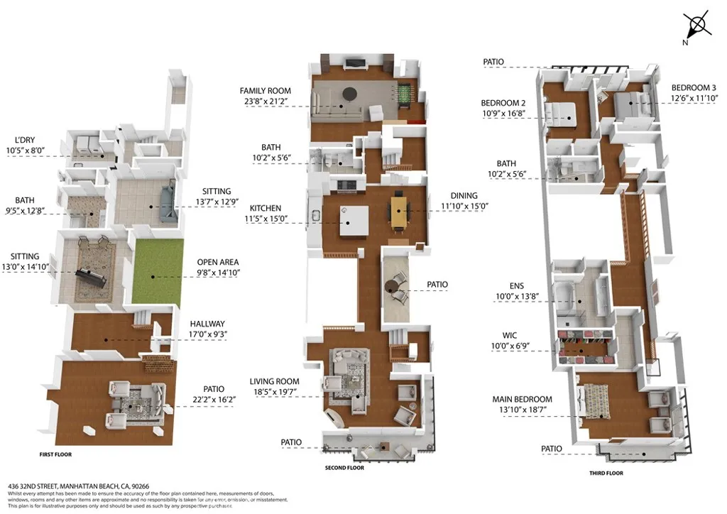 Coastal Living Redefined in the Sand Section! This KAA-designed home is a study in modern coastal elegance, defined by sleek architectural lines and understated, contemporary interiors. Perfectly positioned in the prestigious Sand Section, the home is as much a work of art as it is a sanctuary of effortless sophistication. A large front deck with a fireplace and grassy area set the stage for casual gatherings or quiet moments- a unique feature in this coveted neighborhood. A curated palette of rich natural woods warms the elegant interior, while La Cantina doors on every level dissolve the boundaries between indoor refinement and outdoor serenity, inviting ocean breezes and natural light inside. The entry level opens onto a foyer which leads to a den with a private patio, an ensuite bedroom (perfect for guests), and a separate laundry room. The second level houses a formal living room with stone fireplace and balcony, kitchen (featuring a soaring ceiling open to the third floor), Media room with a beautiful built- in bar and desk area) and a full bath. Upstairs, you'll find the primary suite with a Ocean View balcony, an office (overlooking the second level) and two additional bedrooms and full bath Take a look at the floor plan in photos! More than a residence, this home is a modern expression of Manhattan Beachs lifestyle- where thoughtful design and a profound connection to the coast and nature come together in perfect harmony.