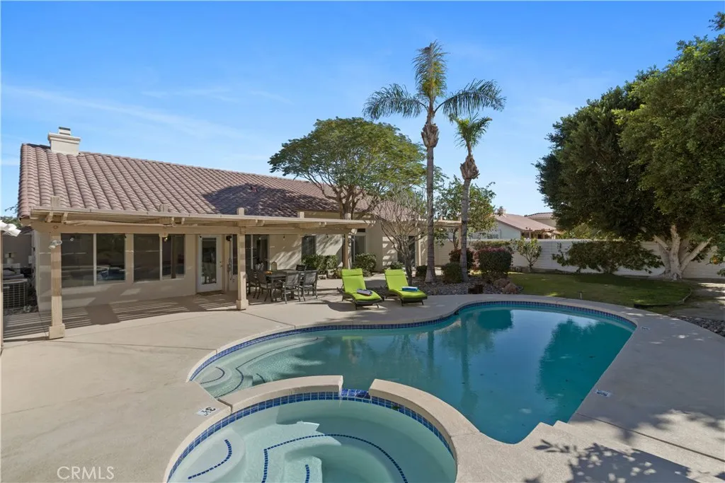 (Pricing reflects the lowest rates of the year; rates may be higher during peak season and other months.) Welcome to Casa De Joya a luxurious single-story retreat in the highly desirable Rancho Ocotillo Community of La Quinta. This beautifully designed 4-bedroom, 2.5-bath home offers 2,436 sq ft of elegant living space with soaring vaulted ceilings and modern upgrades throughout. Step into a spacious living room and continue to the open-concept family room with a cozy fireplace. The gourmet kitchen features upgraded countertops, white cabinetry, and stainless steel appliancesperfect for entertaining. The expansive master suite is set apart for privacy and includes a walk-in closet and private bath. Three additional guest rooms, including one with bunk beds and a trundle (sleeps 4), offer comfortable accommodations for family or friends. Enjoy new paint, vinyl wood flooring, and tasteful furnishings that blend comfort with style. The backyard is a true desert oasiscomplete with a heated pool (fees apply), raised spa, wood-burning fire pit, and a covered patio with lounge seating. Special Amenities: ? Private heated pool/spa (heating fees apply) ? HD flat-screen TVs with cable ? Fast, extended WIFI mesh network ? Fully equipped gourmet kitchen ? Spacious master suite and upgraded bathrooms ? Central A/C for year-round comfort ? Covered patio with fire pit and lounge chairs Located near top-rated schools, restaurants, shopping, golf, and freeway access, Casa De Joya is ideal for families, couples, or groups seeking a relaxing getaway. A Ring doorbell camera provides added sec