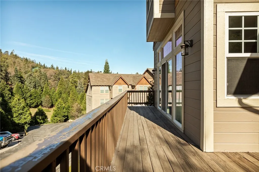 Nestled in the highly sought-after gated community of Arrowhead Canyona neighborhood celebrated for its ease of low-maintenance mountain living. This home also includes lake rights to beautiful Lake Arrowhead, adding even greater appeal to its idyllic location. Privately situated on one of the community's quieter streets, this home offers abundant parking, including a spacious two-car garage, driveway parking for two vehicles, and convenient additional community parking nearby. Proudly presented by the original owners, this residence exudes pride of ownership and tasteful upgrades throughout. Step inside to discover builder-upgraded wood flooring in the kitchen and entry, setting a warm and modern mountain aesthetic. Custom faux wall texture adds elegance to every room, enhancing the home's distinctive character. The inviting sunken living room features a stunning river rock fireplace, thoughtfully positioned between the main living room and the dining/kitchen area, creating a seamless flow ideal for entertaining. A large secondary living space provides versatile options for a formal sitting area, additional family room, or an entertainment bar area. The open-concept kitchen is a chefs delight, featuring granite countertops, stainless steel appliances, rich wood cabinetry, and custom lighting fixtures that highlight both the kitchen and dining spaces beautifully. Enjoy the tranquility of mountain living with two distinct outdoor spacesa charming front deck that overlooks the lush, forested surroundings, perfect for morning coffee or relaxing evenings, and a secluded back pa