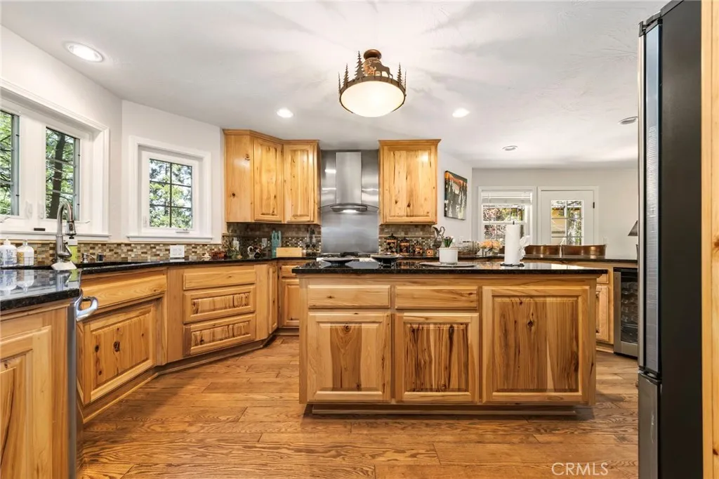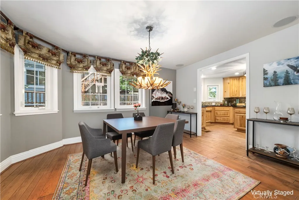 Set behind the gates of Meadow Shores, this custom-built Lake Arrowhead retreat blends mountain charm, elevated comfort, and countless recreation choices including coveted lake rights and a private dock. Designed for both relaxation and entertaining, the 4-bedroom, 3-bath home comes fully furnished with everything you need to move-in and begin serene living immediately. Walking through the front door a dramatic two-story foyer with soaring ceilings sets the tone, leading to formal living and dining areas highlighted by fireplaces and rustic design elements, while the open-concept kitchen and family room showcase custom cabinetry, premium appliances, and seamless access to expansive wrap-around decks and a private spa area with hot tub. Thoughtfully designed layout with multiple indoor and outdoor gathering spaces. A large game room with a full bar provides the perfect setting for hosting fun-filled events, while upstairs, the spacious primary suite offers a true retreat with its own fireplace, spa-inspired bath, and dual walk-in closets, accompanied by three additional bedrooms and a beautifully updated guest bath. The grounds are ideal for outdoor enjoyment, complete with a fenced yard, patio, and charming accents, all just minutes from Lake Arrowhead Village and Country Club. Other features include dual air conditioning, backup generator, ample parking, and direct level entry from the attached two-car garage. If you are looking for a home with a rare combination of privacy, luxury, functionality, and refined lakeside living, you have found it here.