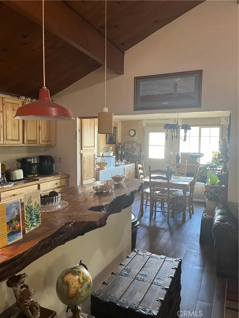 Charming single-level mountain retreat on a desirable corner lot in the sought-after Peter Pan area of Big Bear Cityjust steps from the pilots entrance to Big Bear Airport. Surrounded by mature trees, this inviting home offers the perfect blend of privacy, comfort, and classic cabin charm. Inside, youll find warm wood accents, vaulted tongue-and-groove ceilings, and an open-concept living space centered around a cozy wood-burning fireplaceideal for relaxing after a day in the mountains. Natural light fills the home, enhancing the spacious feel throughout. While tax records reflect 2 bedrooms, the home offers three generously sized bedrooms, providing flexible space for guests, family, or a home office. The fully fenced yard offers ample room for pets, entertaining, or storing outdoor toys, with additional space for RV or boat parking. A garage and storage options add convenience, while the insulated roof supports year-round comfort. Whether you're looking for a full-time residence, weekend escape, or investment opportunity, this well-located mountain home delivers both charm and versatility.