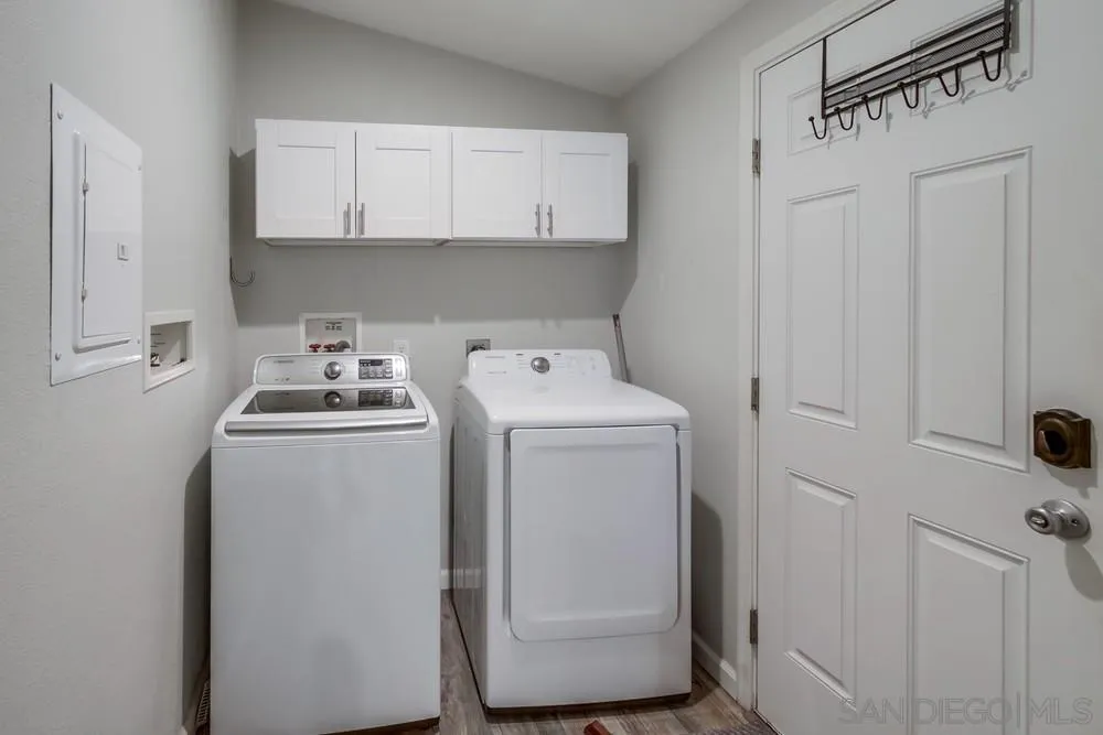 Beautifully maintained 3-bedroom, 2-bath manufactured home in 55+ community of Rancho Mesa in El Cajon offers 1,136 sq ft of comfortable living space. An open-concept layout with vaulted ceilings, a modern kitchen with quartz countertops, soft-close cabinets, and vinyl flooring throughout. The bright and airy floor plan creates a welcoming atmosphere. 2-car carport, and an in unit convenient washer/dryer. Multiple sheds provide extra storage space for your needs. Located in a vibrant 55+ community, this home offers a wealth of amenities, including a BBQ area, clubhouse, exercise room, and a gated entrance for added privacy and security. Residents also have access to a laundry facility, swimming pool, recreational area, and RV/boat parking. Enjoy weekly food assistance on Saturdays, transportation services, and a variety of social and recreational activities. With opportunities for volunteerism and an overall strong sense of community, this is a place you’ll be proud to call home.