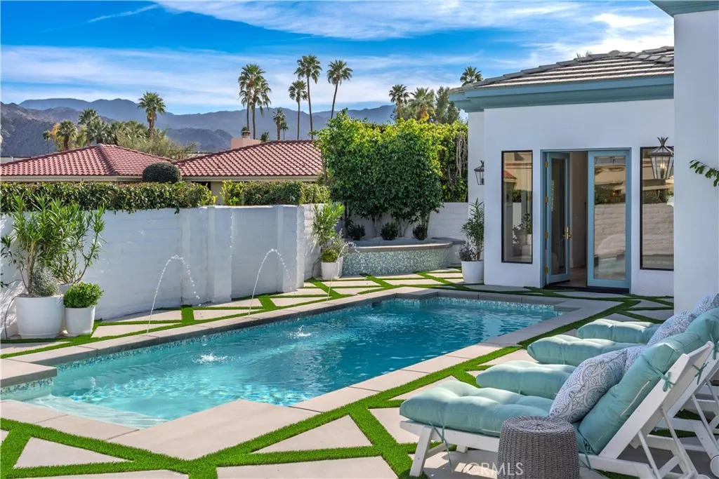 Completely Reimagined Luxury Home in the Heart of Indian Wells. This stunning 4-bedroom, 6-bathroom residence offers approximately 4,000 square feet of refined living space on an oversized 12,000 square foot lot. No detail was overlooked and major systems have been upgraded, including HVAC, pool, and professional landscaping. Designed for exceptional desert living, this private compound showcases breathtaking mountain views and seamless indoor-outdoor entertaining. At the heart of the home is an expansive great room featuring a full bar and generous entertaining area, perfect for hosting gatherings or relaxing in style. Elegant flooring and designer light fixtures elevate the modern, sophisticated interiors. The resort-style backyard boasts a sparkling quartz pool, spa, and fire pit, as well as ample space to enjoy the stunning desert surroundings. Ideally located in the heart of Indian Wells with exceptionally low HOA dues, this turnkey property is just moments from world-class golf, fine dining, and premier shopping. A rare opportunity to own a beautifully upgraded home in one of the deserts most desirable communities.