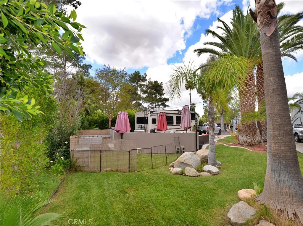 Luxury RV Lot in Rancho California RV Resort Prime Outdoor Living. Welcome to one of the most beautifully improved RV lots in the highly sought-after Rancho California RV Resort. This spacious, oversized lot offers the perfect blend of comfort, privacy, and resort-style living. Framed by stunning Canary Island palm trees, the property creates a warm, tropical ambiance the moment you arrive. A thoughtfully designed outdoor kitchen makes entertaining effortlessideal for hosting friends and family or enjoying quiet evenings under the stars. Specifically, stainless steel grill, side burner for large pots or searing, 4 burner cooktop, oven, stainless steel sink with hot water and under counter washer/dryer. Wrap around style tiled bar offers comfortable seating. This lot also features a lush grass area, providing a soft, green space for relaxation, pets, picnics or outdoor lounging. A mature hedge lines the South East side of the property, offering both beauty and added privacy, creating your own secluded retreat within the resort. The resort itself offers endless amenities. Such as a 14 hole par 3 golf course, 5 crystal blue pools and spas, fishing lake, pickleball, bocce ball, dog park, laundry facilities with showers and restrooms, market, restaurant, 2 club houses. Notable things to know: resort is not age restricted, owners golf for free with no tee times required, RCRVR is gated with a security service, trash and water service is included in HOA. Resort is roughly an hour from shopping/restaurants on El Paseo in Palm Desert, just over an hour to the coast and 20 minutes f