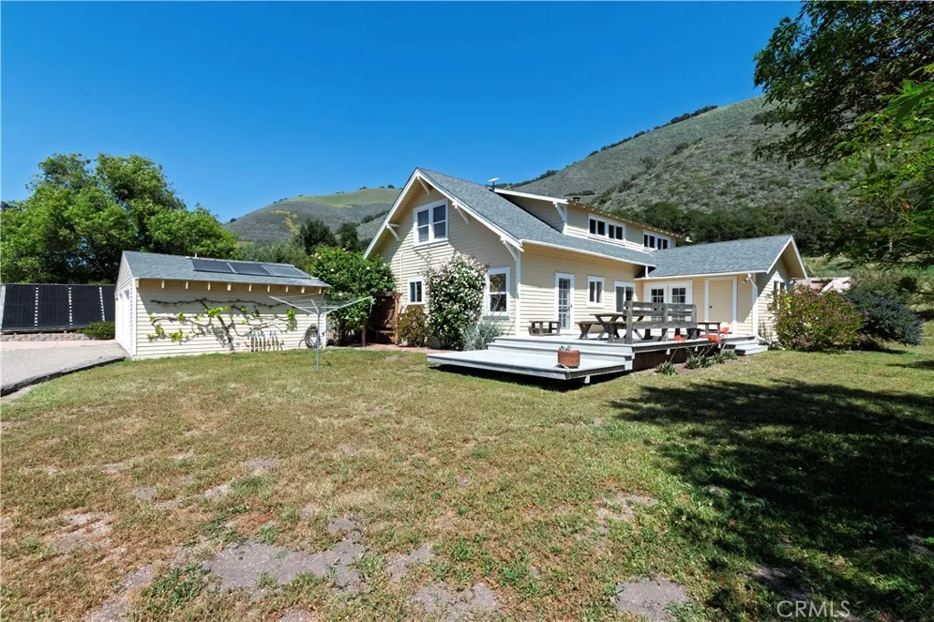 Welcome to 4651 Tepusquet Roada timeless, storybook farmhouse set on a beautifully maintained ranch in the heart of the Santa Maria Valley. Originally constructed in 1914 and thoughtfully relocated to this peaceful setting over four decades ago, this inviting three-bedroom, two-and-a-half-bath home offers approximately 2,800 square feet of updated living space, blending warmth, character, and functionality. The homes charm begins at the front entry, where a bright and cozy mudroom/sunroom invites you to enjoy morning coffee, a good book, or sunshine year-round. Inside, hardwood floors run throughout the main level, while large windows flood the home with natural light and showcase serene views of the surrounding acreage. The refreshed kitchen offers ample space for cooking and gathering, with adjacent dining and family rooms that are ideal for entertaining or relaxing with loved ones. A wood-burning fireplace warms the den, and a dedicated office off the family room provides the perfect space for remote work, creative pursuits, or a quiet retreat. Upstairs, the spacious primary suite has vaulted ceilings, generous closets, and an en suite bathroom. Two additional bedrooms share a full bath and offer comfort and style for family or guests. Step outside onto the expansive deckperfect for starlit dinners, morning sunrises, or quiet reflection overlooking the rolling grounds. Just beyond, a solar-heated swimming pool and hot tub offer a luxurious escape, powered by the propertys owned solar system. The large barn adds value and versatility, with room for agricultural storage, e