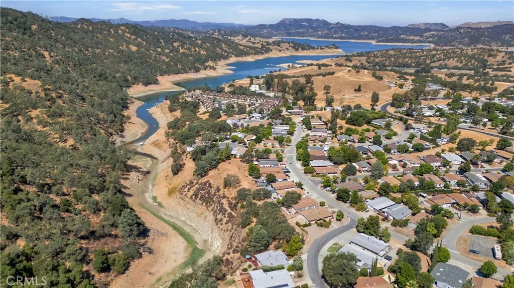 A rare find! Discover an extraordinary home nestled in a prime location along the edge of Lake Nacimiento. Enjoy tranquil waterfront living when the lake level rises. This charming 1,152-square-foot home situated privately on a 6,324 square foot lot provides stunning panoramic views of nature whether you are relaxing in the living room, sipping coffee in the dining room, or entertaining on one of the multi-level exterior decks. This enchanting retreat masterfully blends rustic charm with modern comfort. Step inside to find a warm and inviting interior, featuring an open floor plan with a cozy breakfast bar and fireplace. Imagine preparing meals in the well-equipped kitchen while soaking in the stunning views through expansive windows, creating a delightful culinary experience. The cabin-style residence boasts 2 bedrooms and 2 bathrooms with thoughtfully designed California Closets and pantry for added storage, air conditioning, and ceiling fans. Additional utility areas include: Laundry room (full-size washer/dryer & storage pantry), carport tool shed, and a large under-deck storage room for all your additional toys and dry goods. The home is move-in ready with an option for a fully furnished setup for those who desire a turnkey solution. Situated within Heritage Ranch gated community at Lake Nacimiento, residents are treated to a variety of exceptional amenities, including lake access, two communal pools, tennis and pickleball courts, ballfields and scenic hiking trails. There is also a commercial center with a supermarket, restaurant and coffee shop as well as a local ele