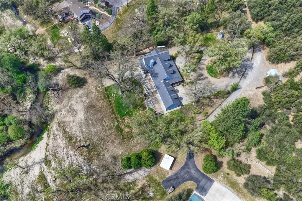 Custom-built riverfront estate in an unmatched, idyllic setting. Set on three park-like acres with sweeping mountain views in every direction, this exceptional property is bordered by the Fresno River and Deadwood Mountaincreating a serene, year-round habitat for abundant birds and wildlife. The securely fenced grounds feature a gated entrance, expansive circular drive, and lush landscaping with majestic trees, decorative walkways, vibrant flowers, and a variety of fruit trees. A welcoming wraparound porch and multi-level decks provide the perfect setting to relax with family, entertain guests, or host larger gatherings. The main level offers a thoughtfully designed layout centered around a striking curved staircase. A gourmet kitchen features an island, hidden walk-in pantry, breakfast bar, and is conveniently located near the laundry room, guest bath, and a separate wet bar with seating area. The comfortable living room with a stone fireplace, formal dining room, and inviting front entry create a warm and elegant atmosphere. Also on the main level is a dedicated office with picture windows, along with a spacious primary suite complete with private bath and direct access to the back deck. Upstairs, two bedrooms each feature walk-in closets and private half baths, connected by a shared Jack-and-Jill shower. The generously sized second bedroom offers flexibility as a playroom, gym, or additional living space. High ceilings throughout the home enhance the sense of openness and light. In addition to the attached four-car garage, the property includes a full workshop with a hal